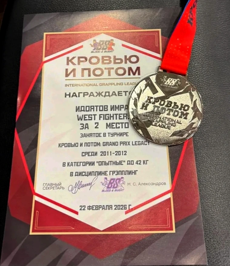 Имран Идаятов, ученик 8в1 класса, занял 🥈 место на открытом турнире по спортивной борьбе грэпплинг и грэпплинг-ги GRAND PRIX LEGACY, который проходил 22 февраля 2026 года в Москве. Это соревнование является одним из самых престижных в рамках международной лиги грэпплинга Blood&Sweat.