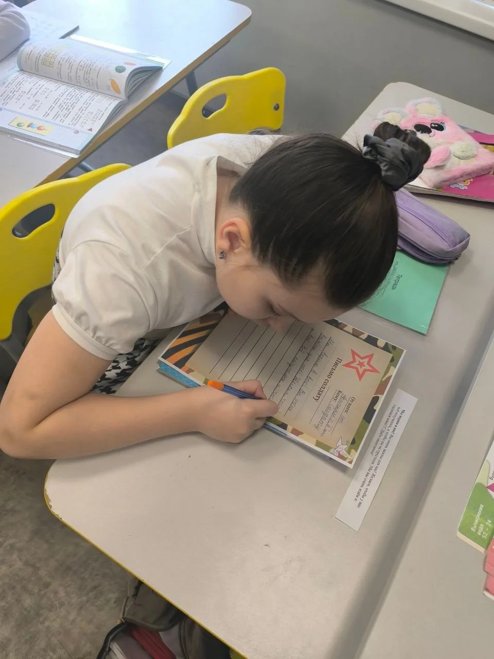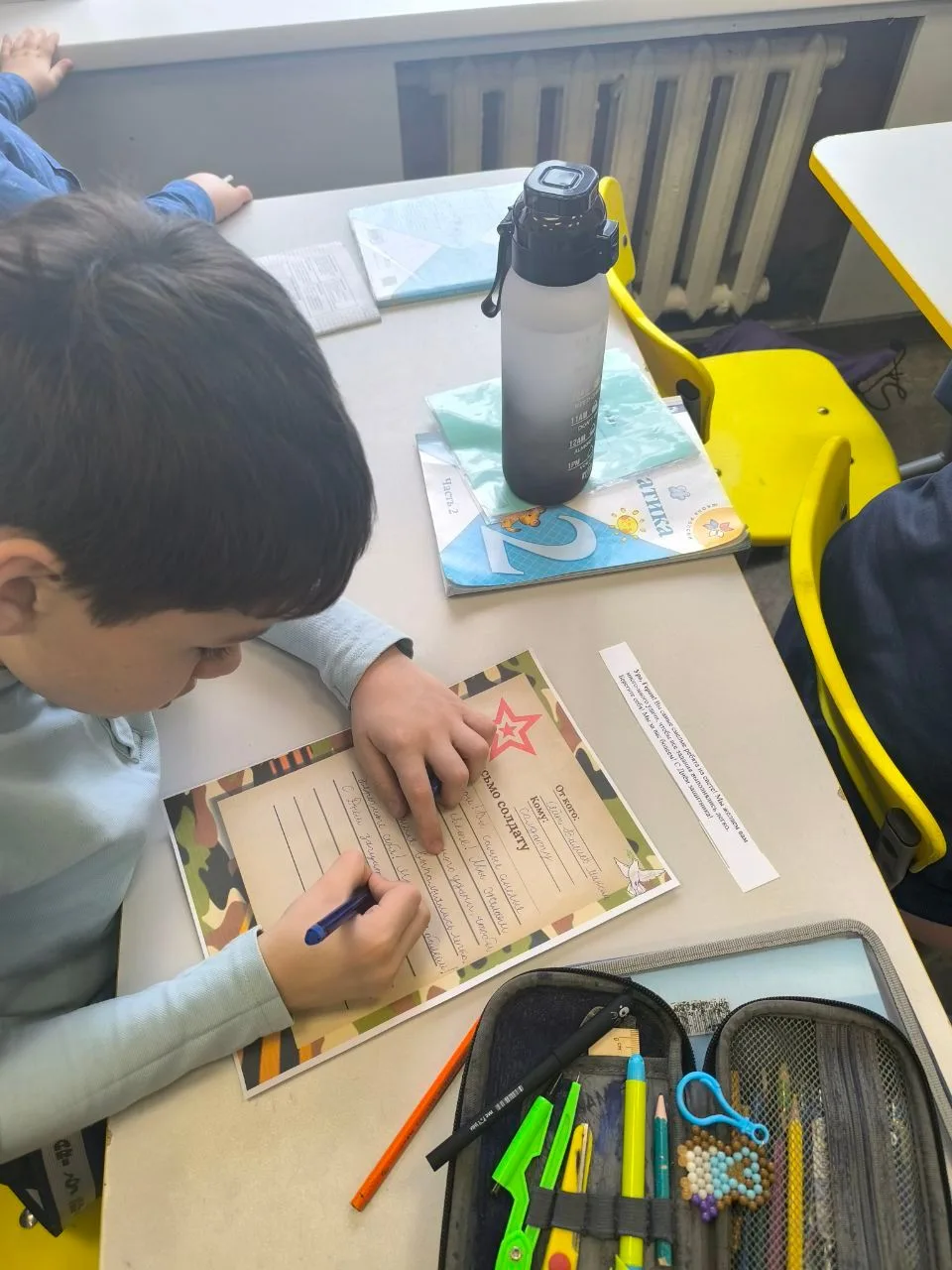 Дети старательно выводили буквы, рисовали яркие рисунки, прикрепляли наклейки и вкладывали в каждое письмо частичку своего тепла и веры в победу. Это был настоящий урок доброты, патриотизма и сострадания.