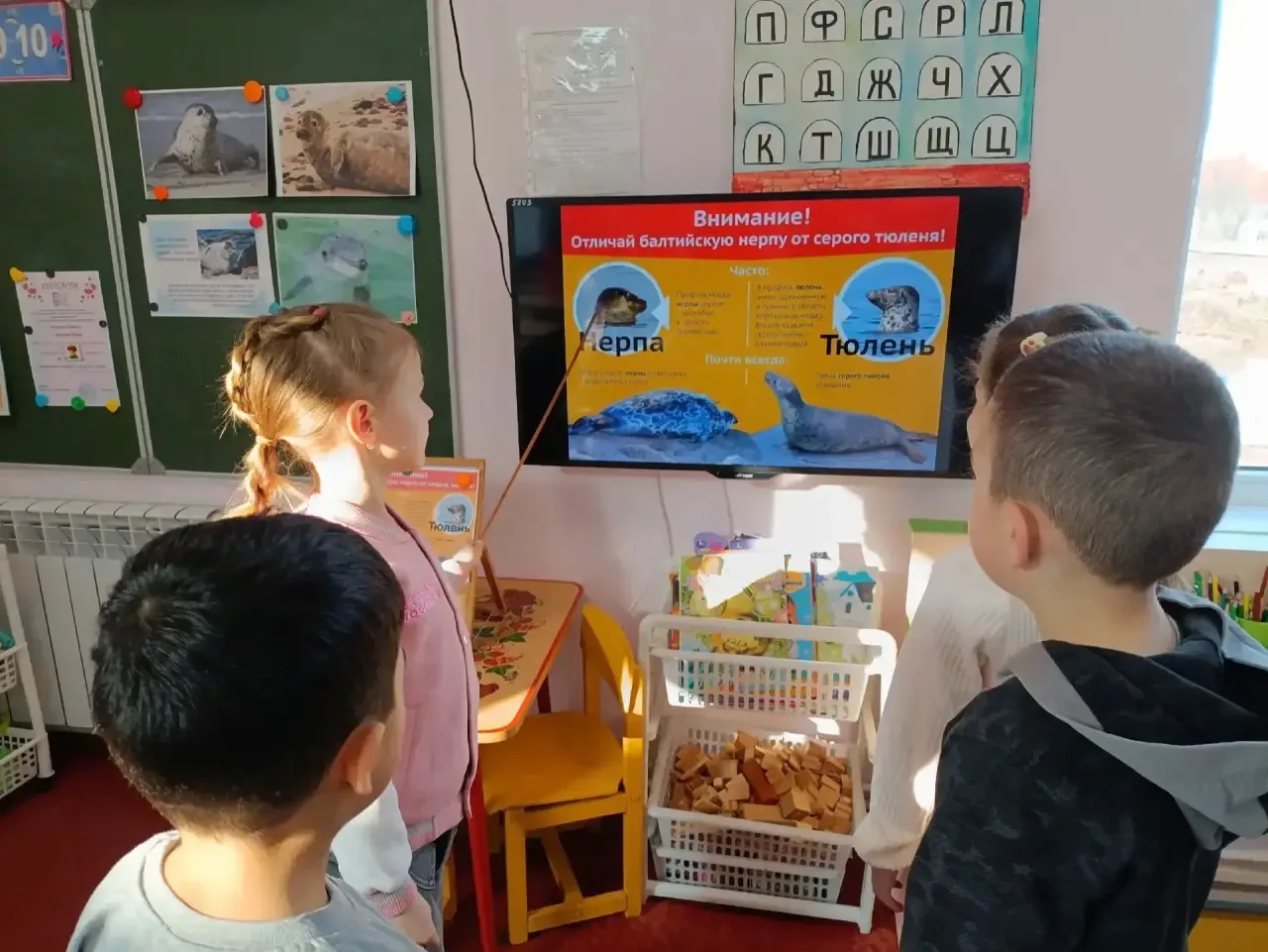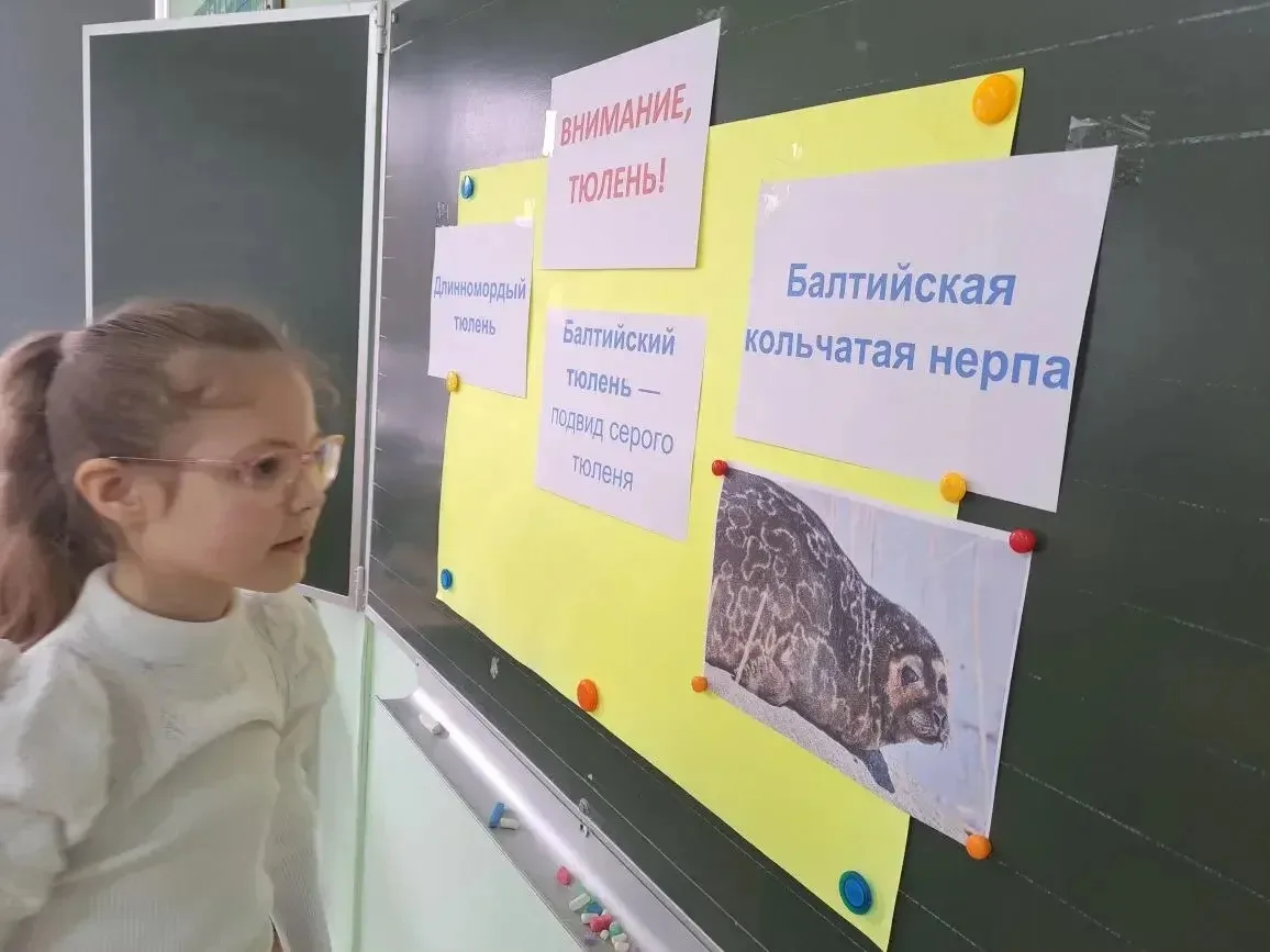 - Экологические уроки 📚 по теме защиты морских млекопитающих Балтийского моря. На уроках педагоги познакомили ребят с видами тюленей, которые обитают в Балтийском море 🦭, чем они отличаются, кого можно встретить на побережье 🏖️ и как правильно вести себя при обнаружении тюленя.