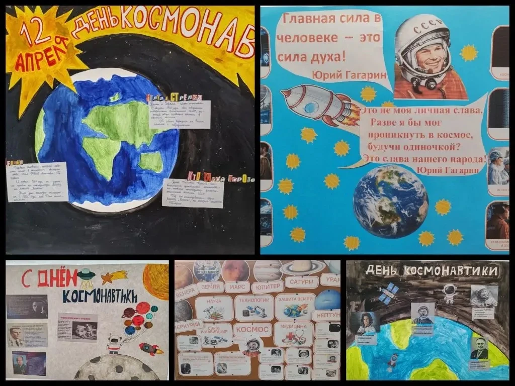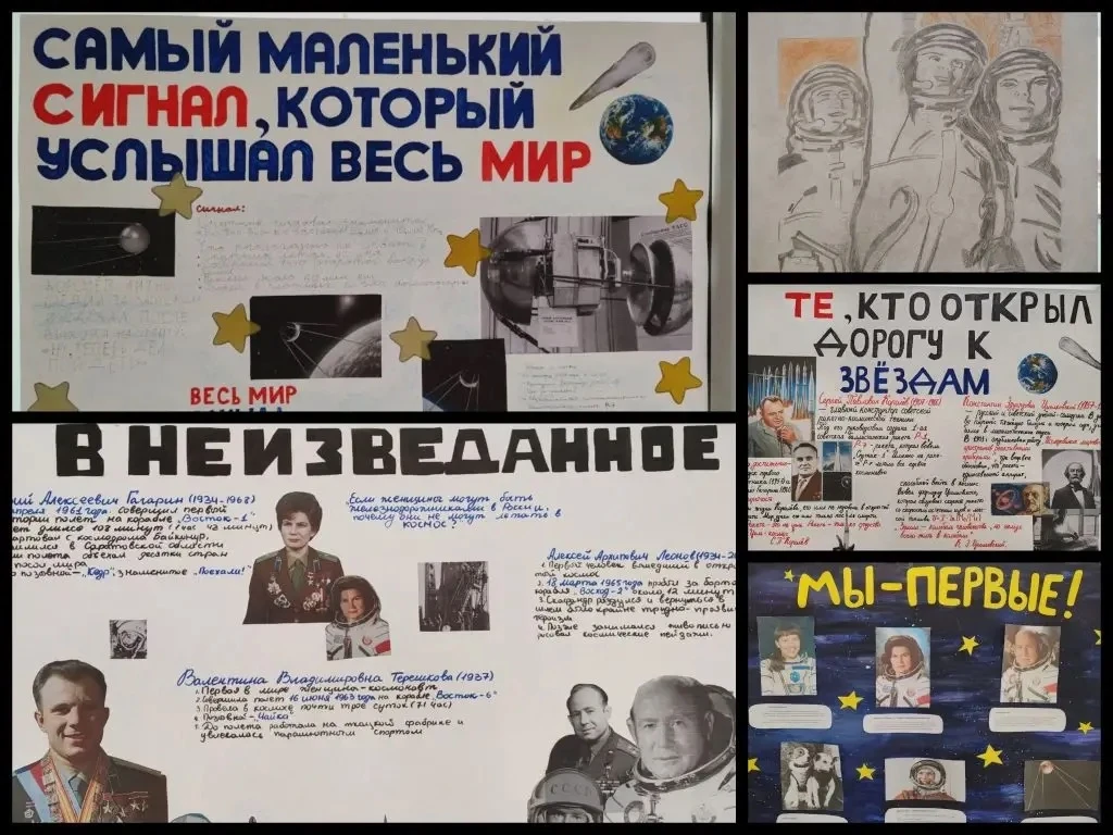 Учащиеся школы подготовили красочные плакаты, рисунки и коллажи, рассказывающие о первом полете Юрия Гагарина в космос и важнейших этапах освоения космического пространства. 🖌️✨