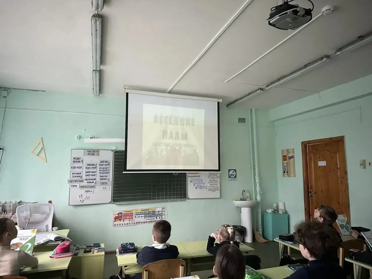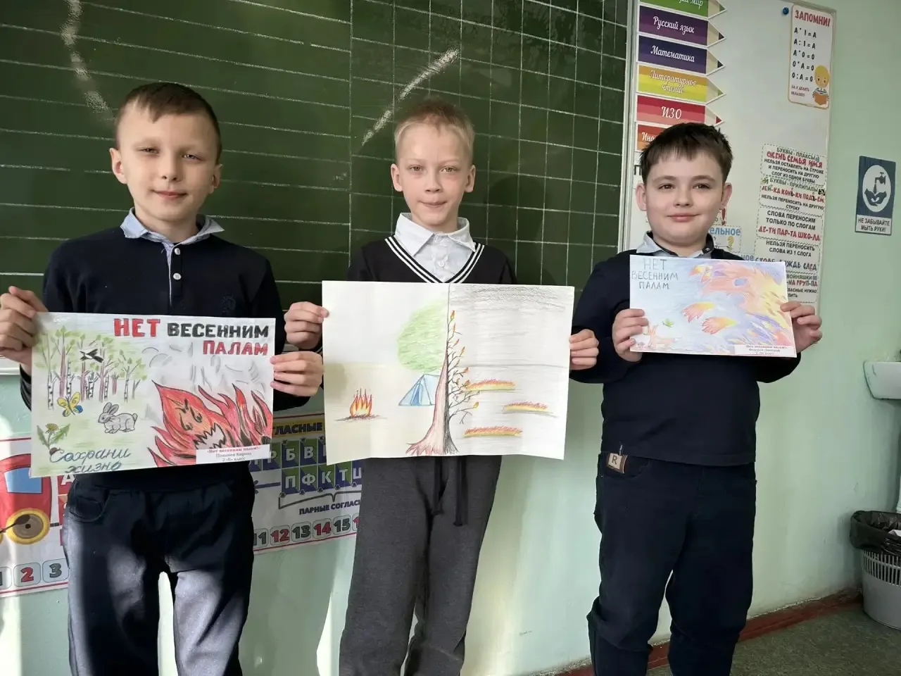 В школе прошли тематические занятия на тему «Нет весенним палам», организована выставка детских рисунков, плакатов, листовок 🎨🖼️, а также беседы, встречи и тематические занятия о профессиях в сфере МЧС 👨🚒🚒, принимающих участие в профилактике и устранении весенних палов.