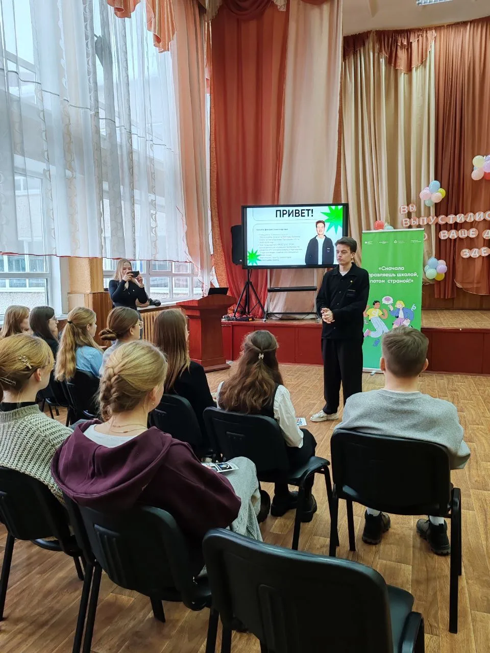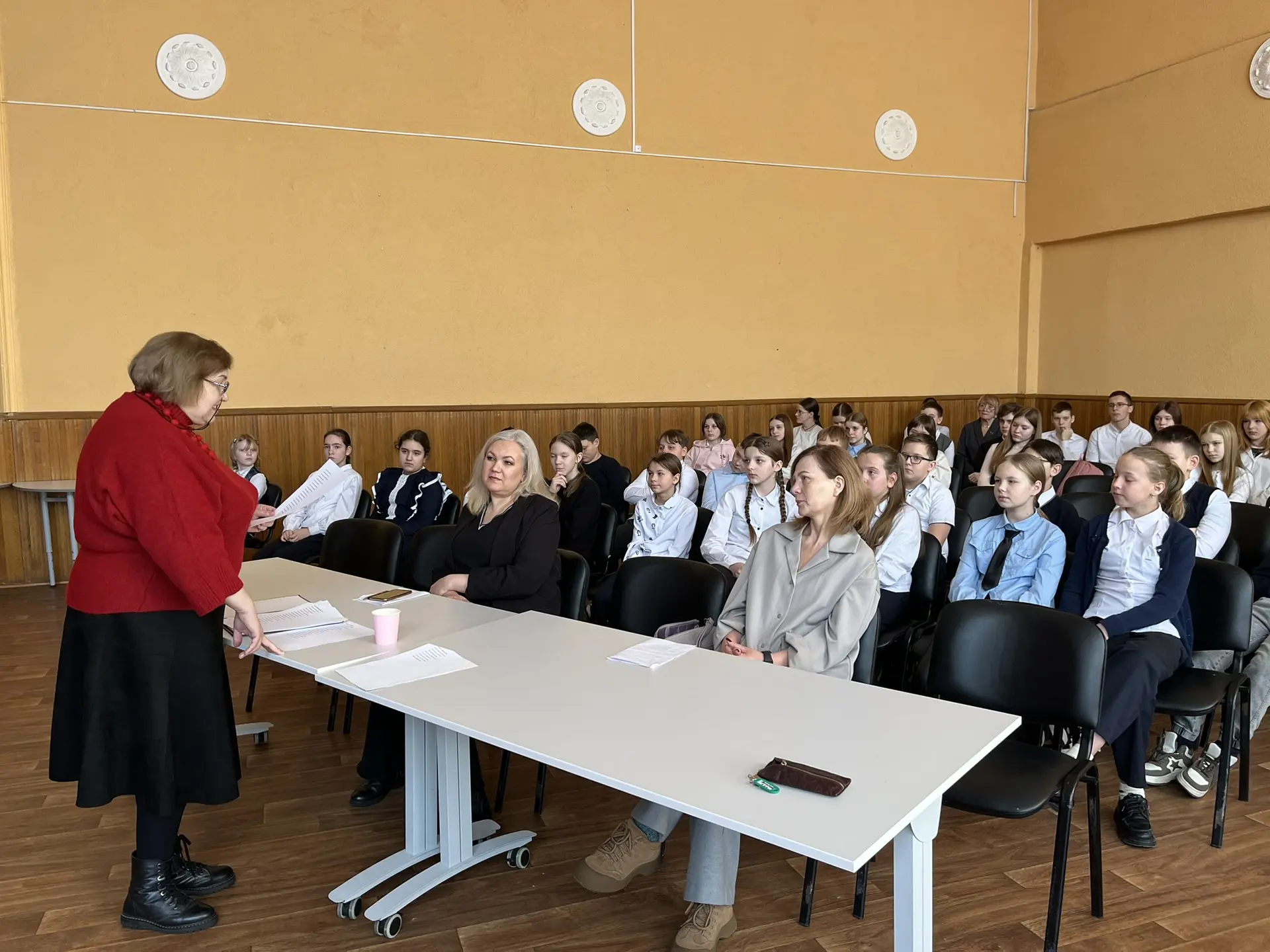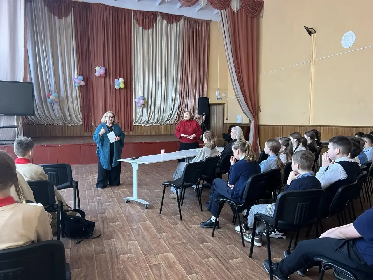 📌✍️ Урок - встреча учащихся 8 «Б» и 8 «В» классов с поэтэссой Мариной Аркадьевной Петраковой, актовый зал, урок литературы