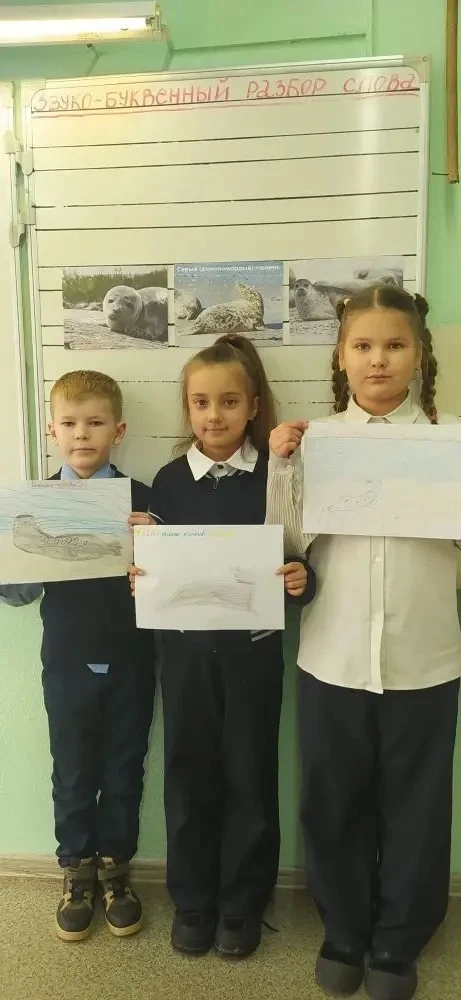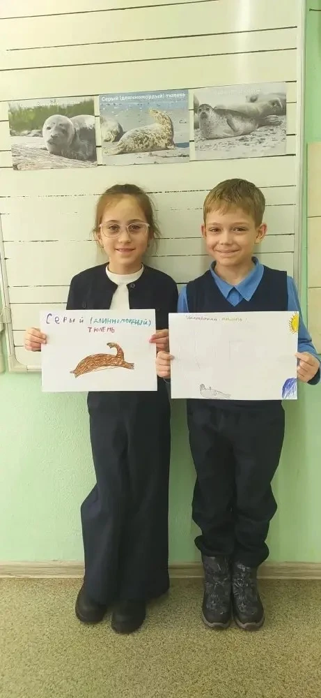 - Также в рамках кампании учащиеся могли просмотреть презентацию 📊 о морских млекопитающих Балтийского моря, разукрасить контуры тюленей на листовках с призывом «Осторожно, тюлени!» 🖍️.