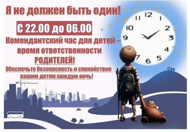 Несовершеннолетние дети до 18 лет 🧑🎓 не могут находиться в общественных местах без сопровождения законных представителей в ночное время с 22:00 до 06:00, 🌃 в период летних каникул (с 1 июня по 31 августа) ☀️ дети в возрасте от 16 до 18 лет с 23:00 до 06:00. ⏰
