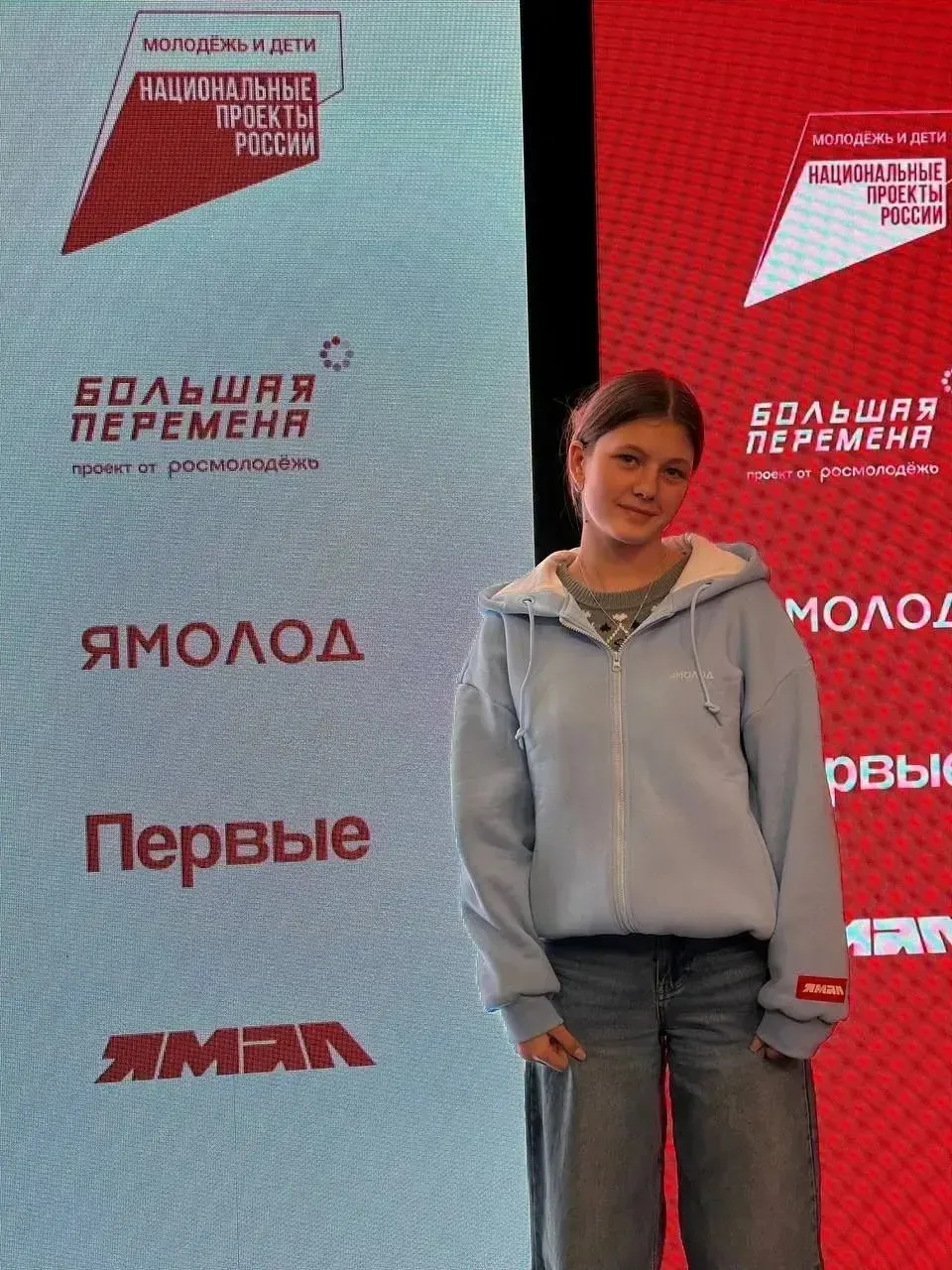 Знакомьтесь, наша гордость — Дроботущенко Злата, финалист всероссийского конкурса «Большая перемена»! 🌟🏆 Совсем недавно Злата вместе с финалистами нашего региона одержала победу в дополнительном этапе проекта, получив незабываемый шанс отправиться в увлекательное путешествие на далекий Ямал 🗺️✈️.