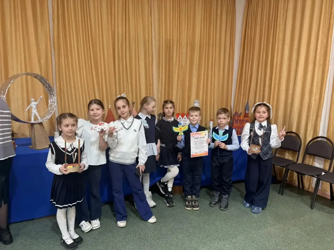 В номинации «Достопримечательности Калининградской области» (макеты существующих достопримечательностей) работа Анфиногеновой Дарины «Кафедральный собор» заняла 1 место ⛪🥇. Макет «Водонапорная башня г. Гвардейска» Алексеевой Елизаветы- 3 место 🏰🥉.