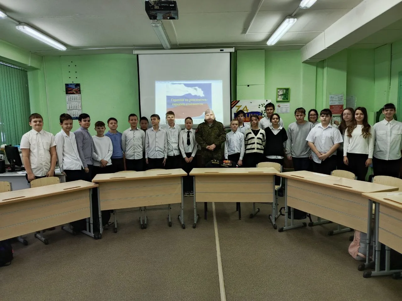 Накануне Дня Защитника Отечества 🇷🇺💪 школа вновь стала местом , где настоящие герои ✨ поделились своими подвигами и жизненными уроками с юными учениками . Встречи прошли в теплой атмосфере , собрав учеников разных классов вместе с ветеранами вооруженных сил 🎖️, участниками специальной военной операции 🛡️.