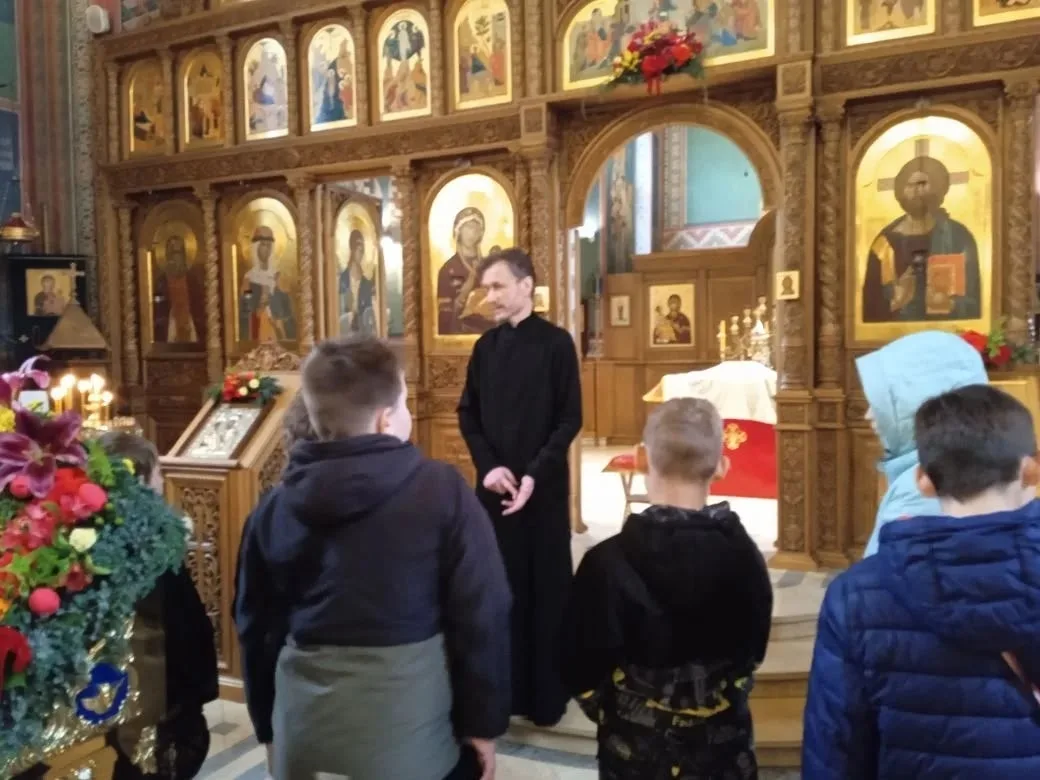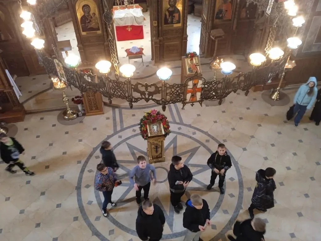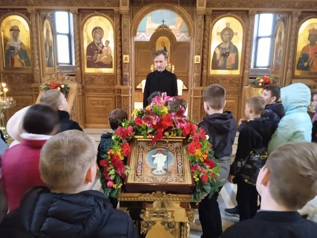 Ребят радушно встретил настоятель храма, отец Владимир. Он мудро и доступно рассказал о том, зачем люди приходят в храм, как должен жить православный человек, и раскрыл тайны исповеди и молитвы. Особое внимание было уделено теме Ангела-Хранителя, который незримо сопровождает каждого из нас.🙏