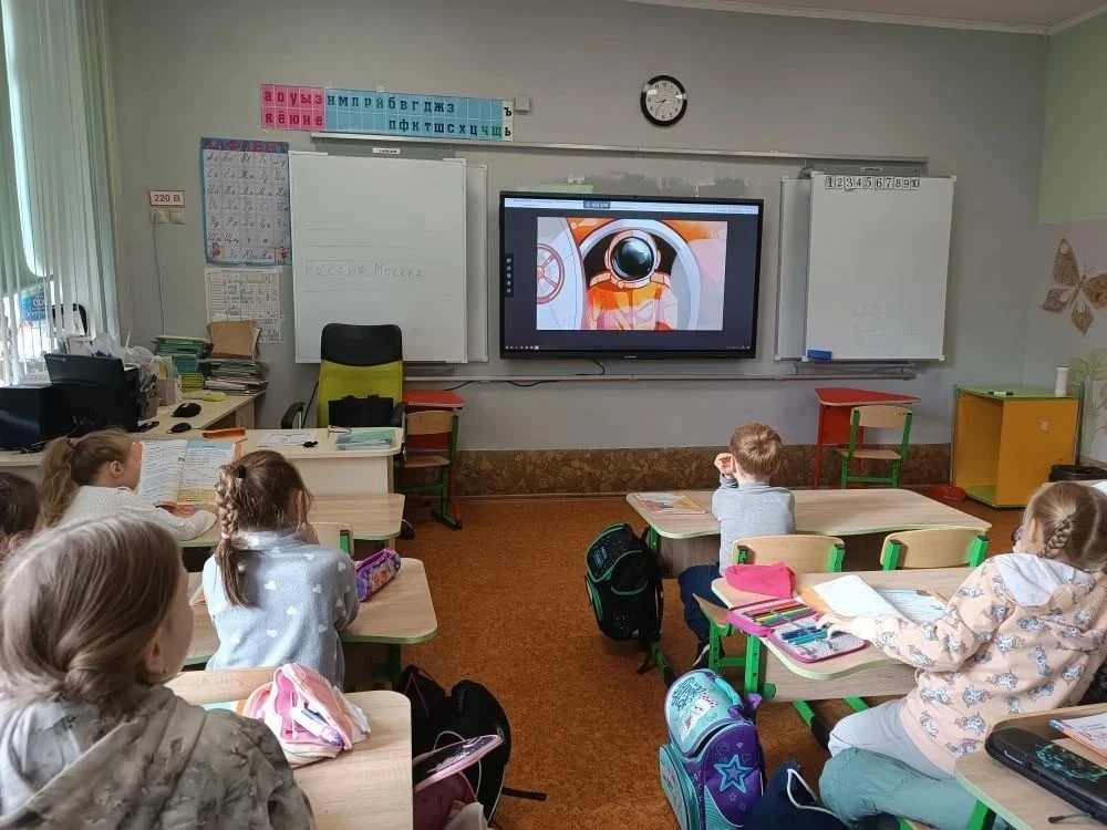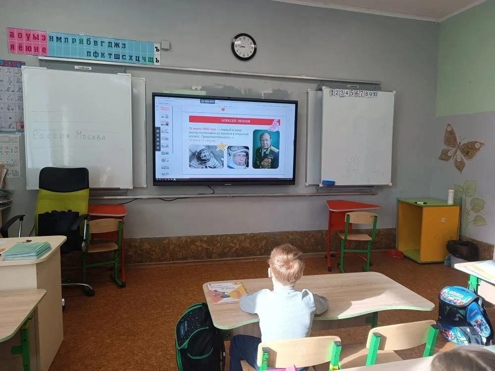 Сегодня в нашей школе тема занятия "Разговоры о важном" была особенно захватывающей – "65 лет триумфа. Ко Дню космонавтики"!