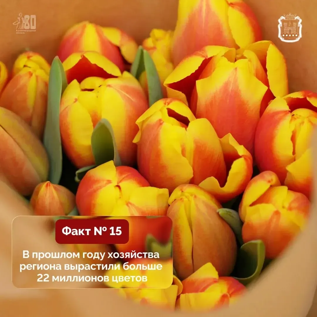 В прошлом году в регионе вырастили больше 22 миллионов цветов: тюльпанов, хризантем, гиацинтов, нарциссов и других. Это почти на шесть миллионов больше, чем в 2023 году.