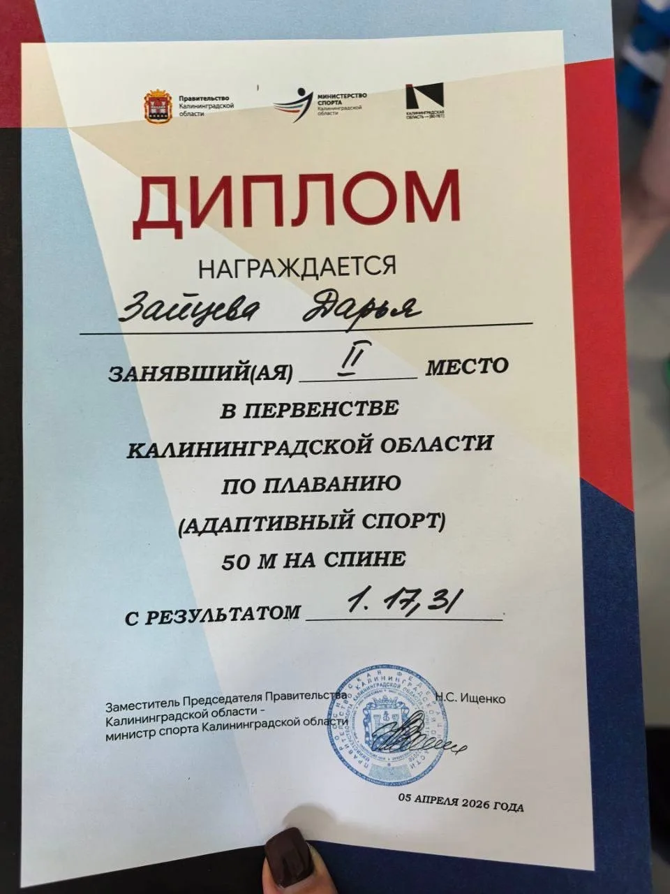 🏆Поздравляем Журомского Сергея с 3 местом в чемпионате Калининградской области по плаванию! ( Адаптивный спорт).🥉