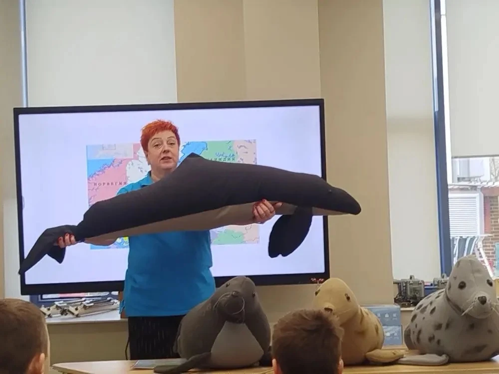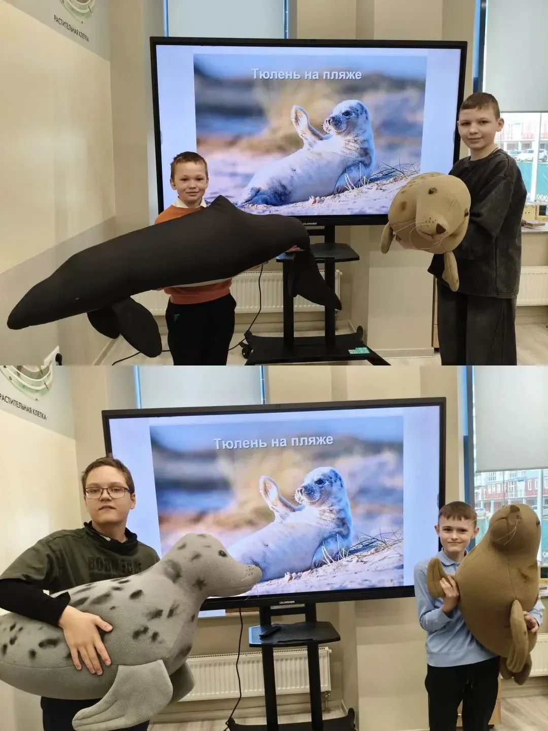 🦭Методист центра рассказала ребятам 2-6 классов о жизни млекопитающих в Балтийском море: обыкновенного тюленя, серого длинномордого тюленя и кита - морской свиньи. 🐳Также провела весёлый мастер -класс, где ребята померили длину тела и ласт, описали окрас муляжей- моделей тюленев и кита. После занятия прошла фотосессия с морскими жителями.