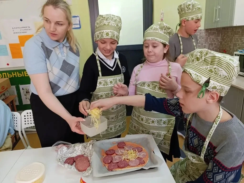 🧑🏻🍳Ученики начальных классов с большим удовольствием приготовили пиццу на уроке внеурочной деятельности «Маленький повар»! Перед тем как приступить к работе, они тщательно изучили все необходимые ингредиенты и этапы приготовления. И вот, наконец, они начали творить.