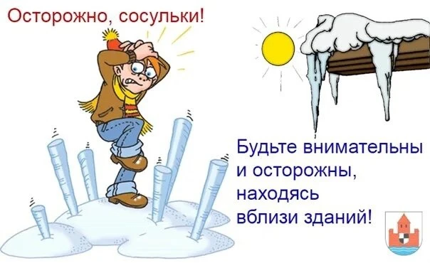 🔹 Смотрите не только под ноги, но и вверх. При выходе из зданий убедитесь, что над вами нет нависшего льда или снега.