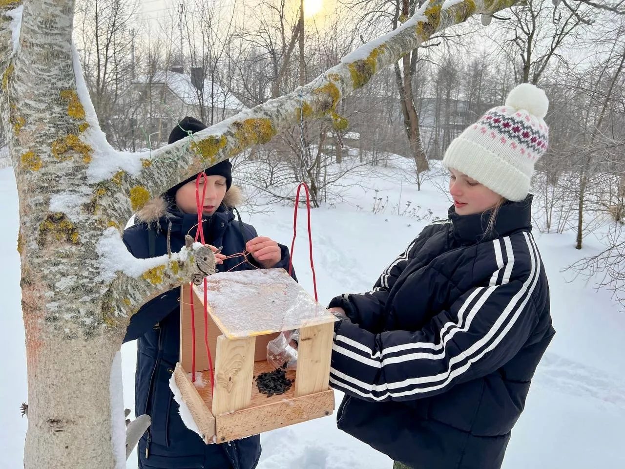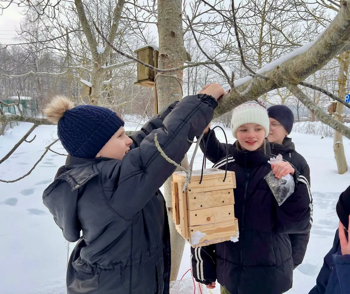 💯Теперь на деревьях в школьном дворе развернулась целая столовая для птиц! 🌲🏢