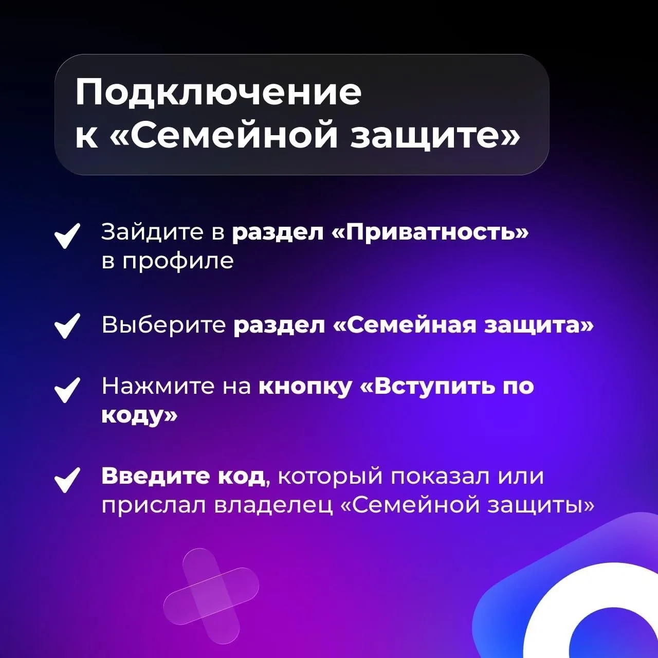👇 Листайте карточки, чтобы узнать, как быстро настроить и подключить «Семейную защиту»