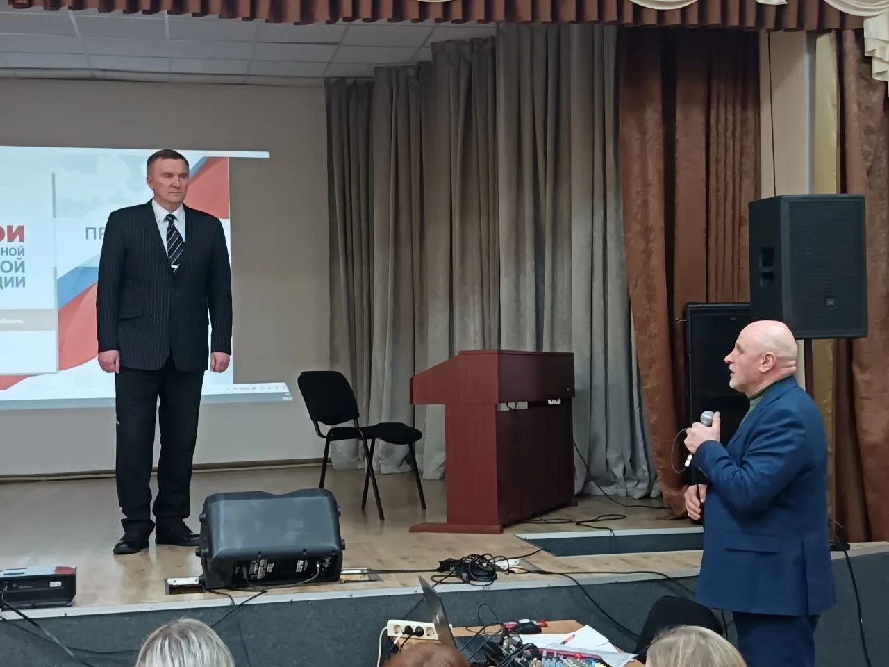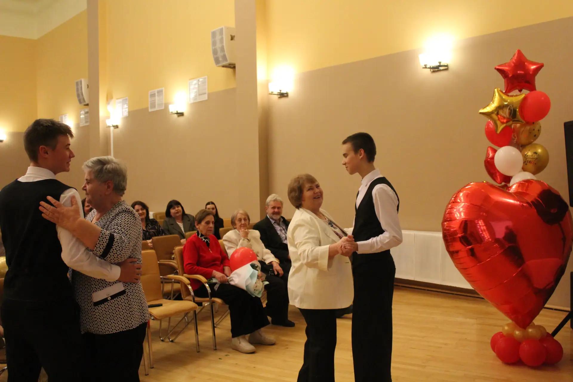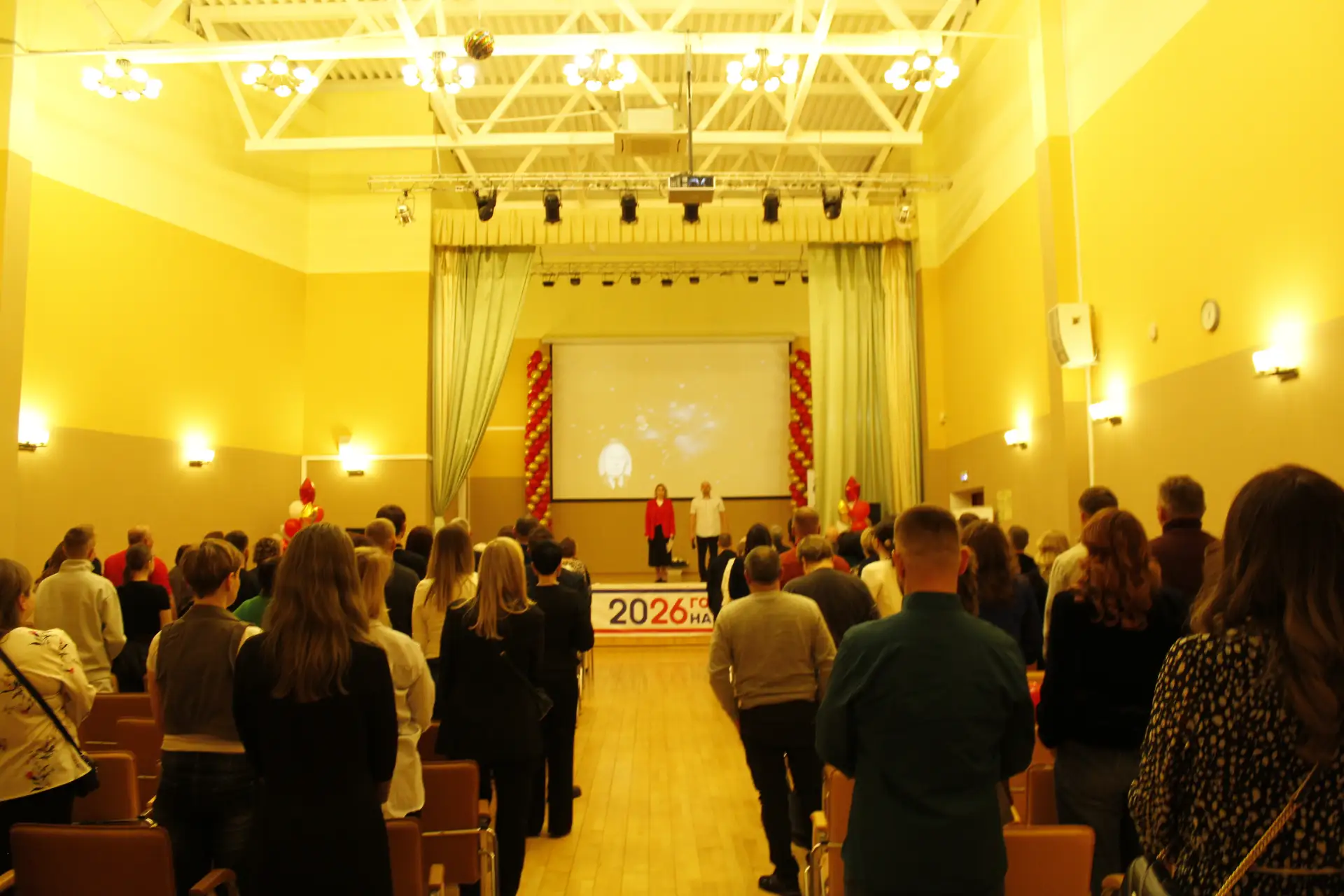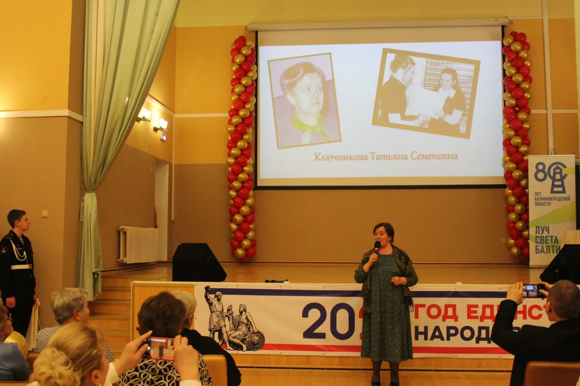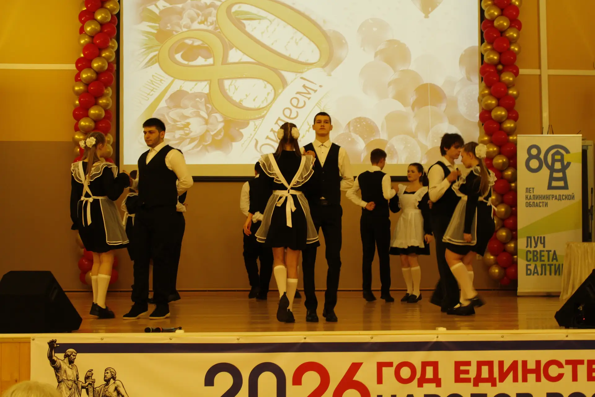 Актовый зал был наполнен улыбками и радостными возгласами узнавания. С приветственным словом к гостям и педагогам-ветеранам обратился глава Краснознаменского муниципального округа Макаров Виктор Георгиевич и Дмитрий Гариевич Чмыхов, депутат Законодательного Собрания Калининградской области. Также поздравить школу с юбилеем пришла председатель Общественного Совета Краснознаменского муниципального округа Ключникова Татьяна Семёновна. Она окончила нашу школу, работала в ней учителем математики и долгие годы руководила Отделом образования Краснознаменского района. И, находясь на этом посту, помогала строить новое здание нашей школы. С оригинальным подарком выступили выпускники 1991 года - 35 лет назад они окончили школу.