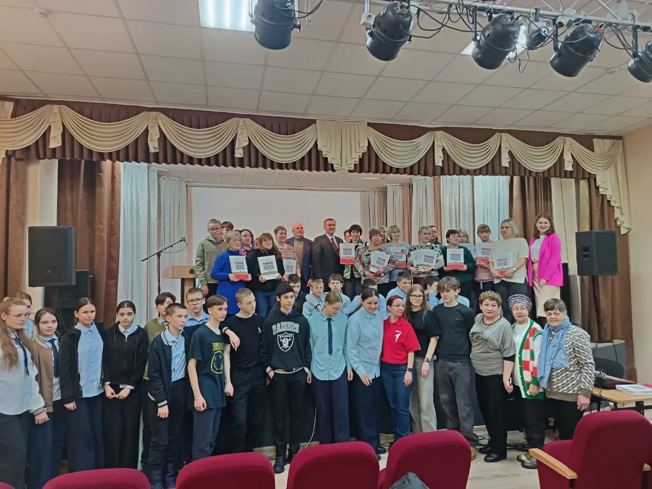 Сегодня учащиеся 7-9 классов были приглашены на встречу с автором книги "Герои России" Юрием Гориным. Встреча состоялась в городском Доме культуры. Нашей школе были переданы книги в подарок.