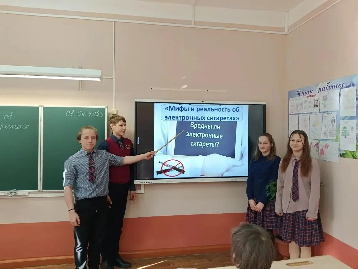7 апреля, во Всемирный день здоровья, для учащихся 7-х классов было организовано профилактическое мероприятие, посвящённое теме табакокурения и современным электронным системам доставки никотина (ЭСДН) " Мифы и реальность об электронных сигаретах".
