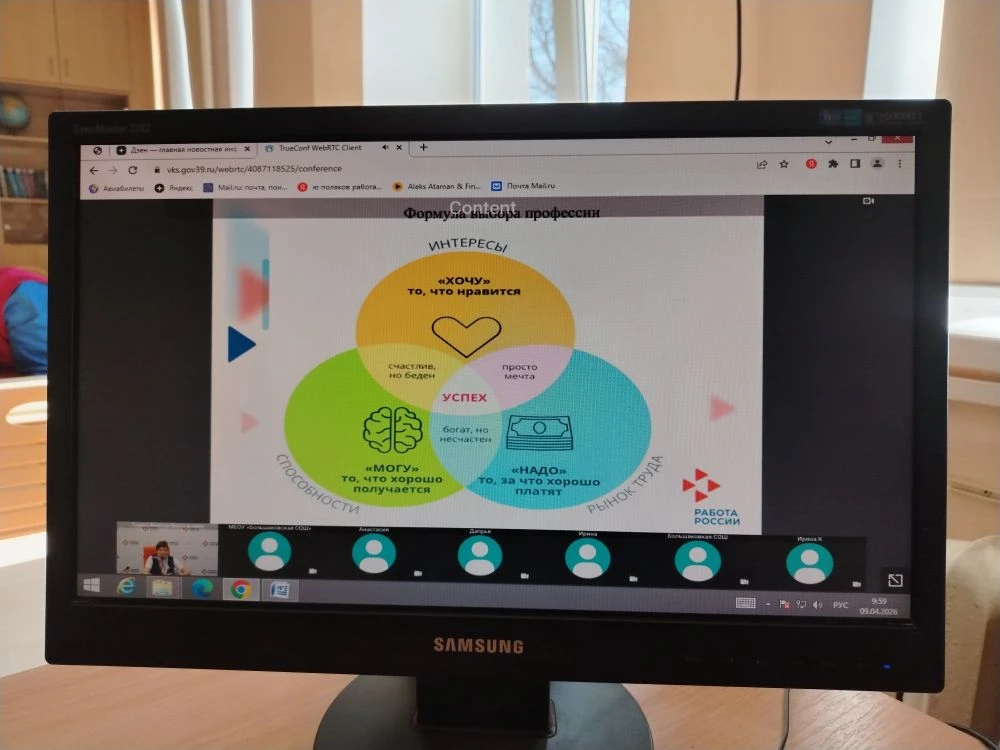 В рамках реализации федерального профориентационного проекта «Билет в будущее», специалист центра занятости населения г. Калининград провела мероприятие с учащимся нашей школы в режиме ВКС.