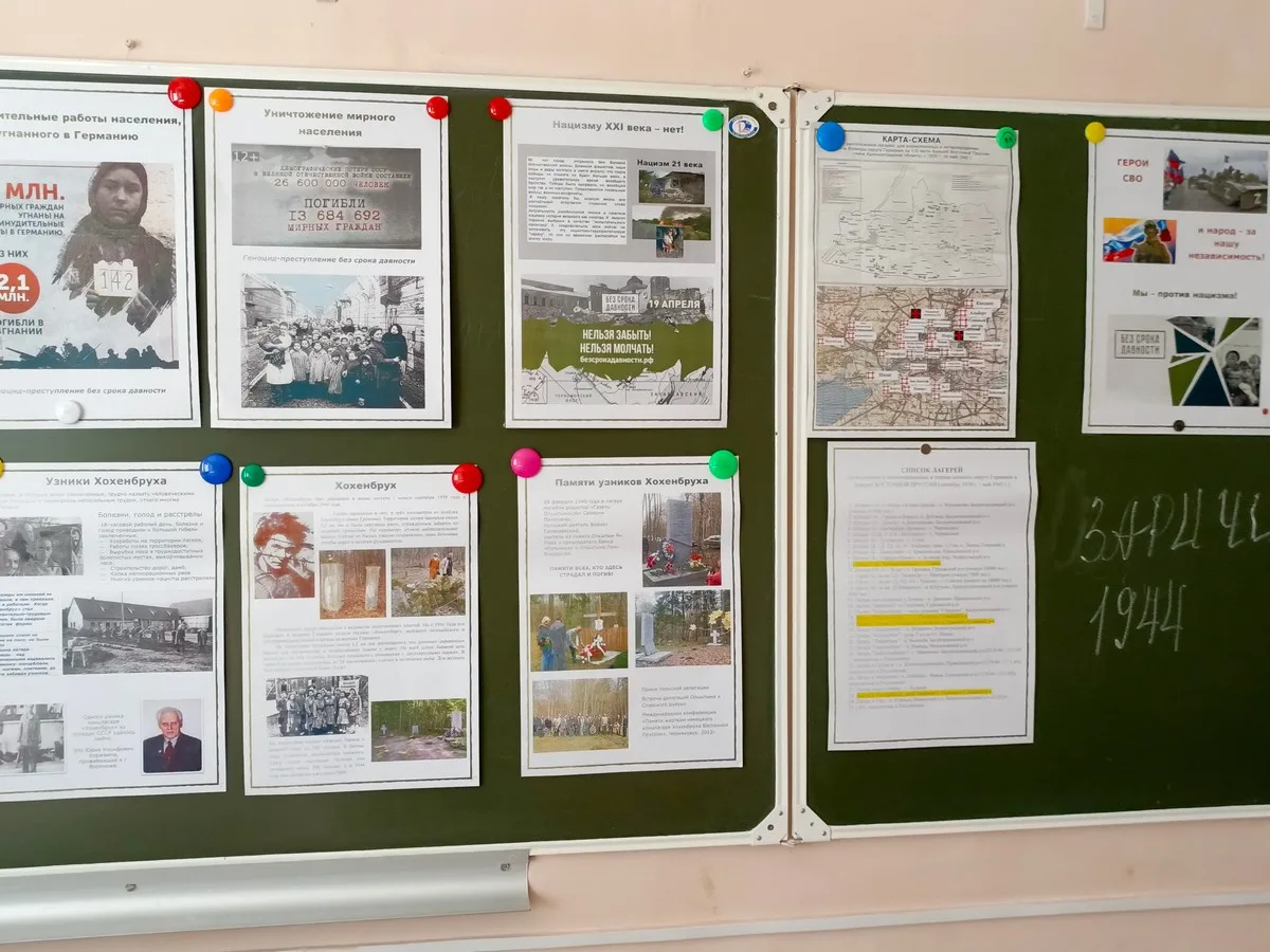 Цель Декады – способствовать сохранению у подрастающего поколения исторической памяти о трагедии мирного населения СССР в годы Великой Отечественной войны. На уроке истории в 8 –9-х классах (учителя Близнюк М.А., Симакова И.В.) разговор шел о той немыслимой трагедии, которая никогда не должна повториться. О зверствах фашистов, обрушившихся на мирное население, о лагере смерти в деревне Озаричи. Память о них – это не просто дань прошлому. Это мощное предупреждение: геноцид – это преступление против человечности, не имеющее срока давности.