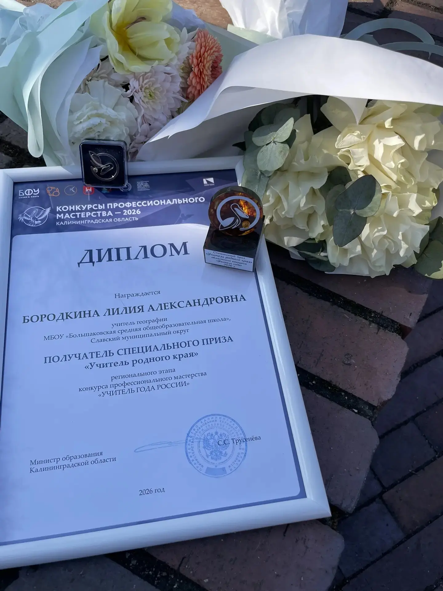 Лилию Александровну Бородкину с победой в номинации специальный приз жюри "Учитель родного края" регионального этапа профессионального конкурса "Учитель года России-2026".