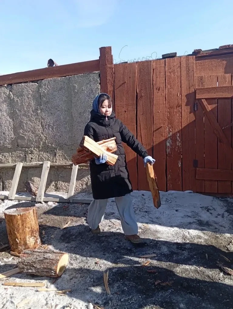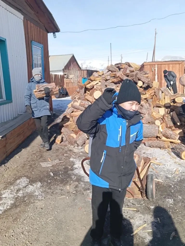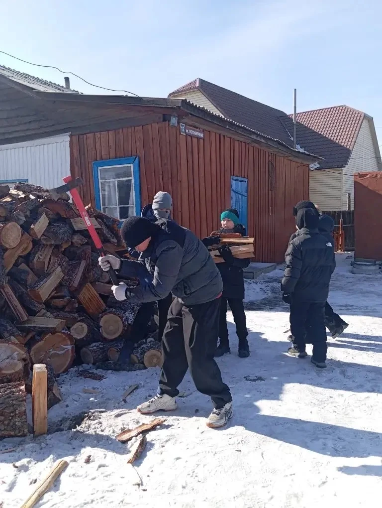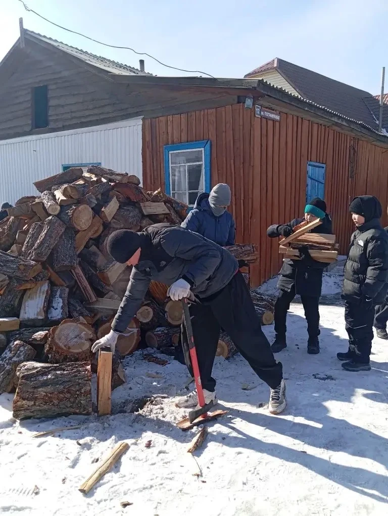В субботу ученики 7" А" класса МКОУ "Кош-Агачская СОШ им.В.И.Чаптынова приняли участие в тимуровской работе — оказали помощь пожилому жителю нашего села. Задача была непростой, но важной: расколоть и собрать дрова для отопления дома.