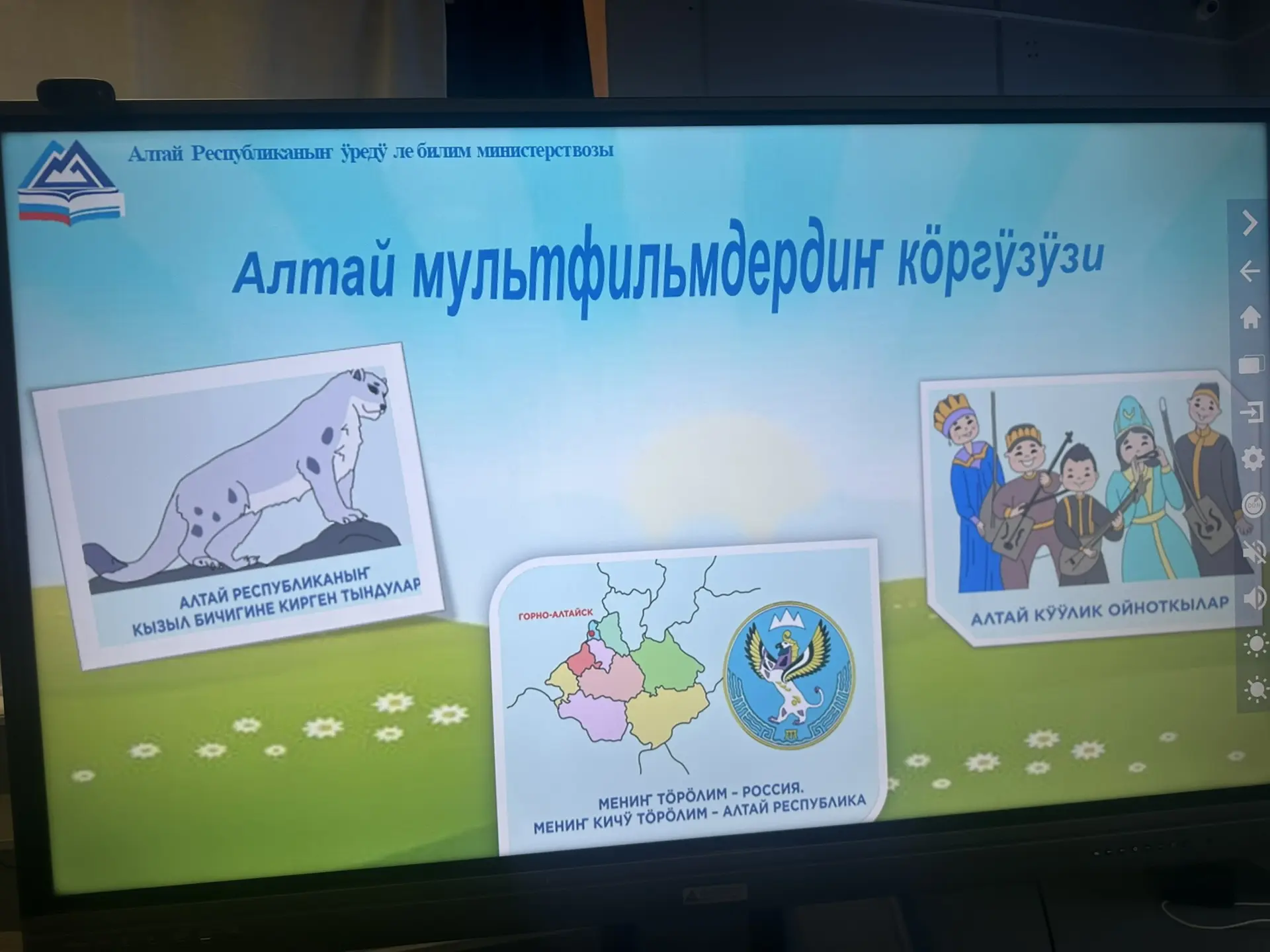 Региональный ресурсный центр «Навигаторы детства» совместно с БУ ДПО РА «Институт повышения квалификации и профессиональной переподготовки работников образования РА» организовали презентационный показ мультфильмов на алтайском языке, наши учащиеся 2-3 классов изучающие алтайский язык приняли участие в увлекательной онлайн трансляции.