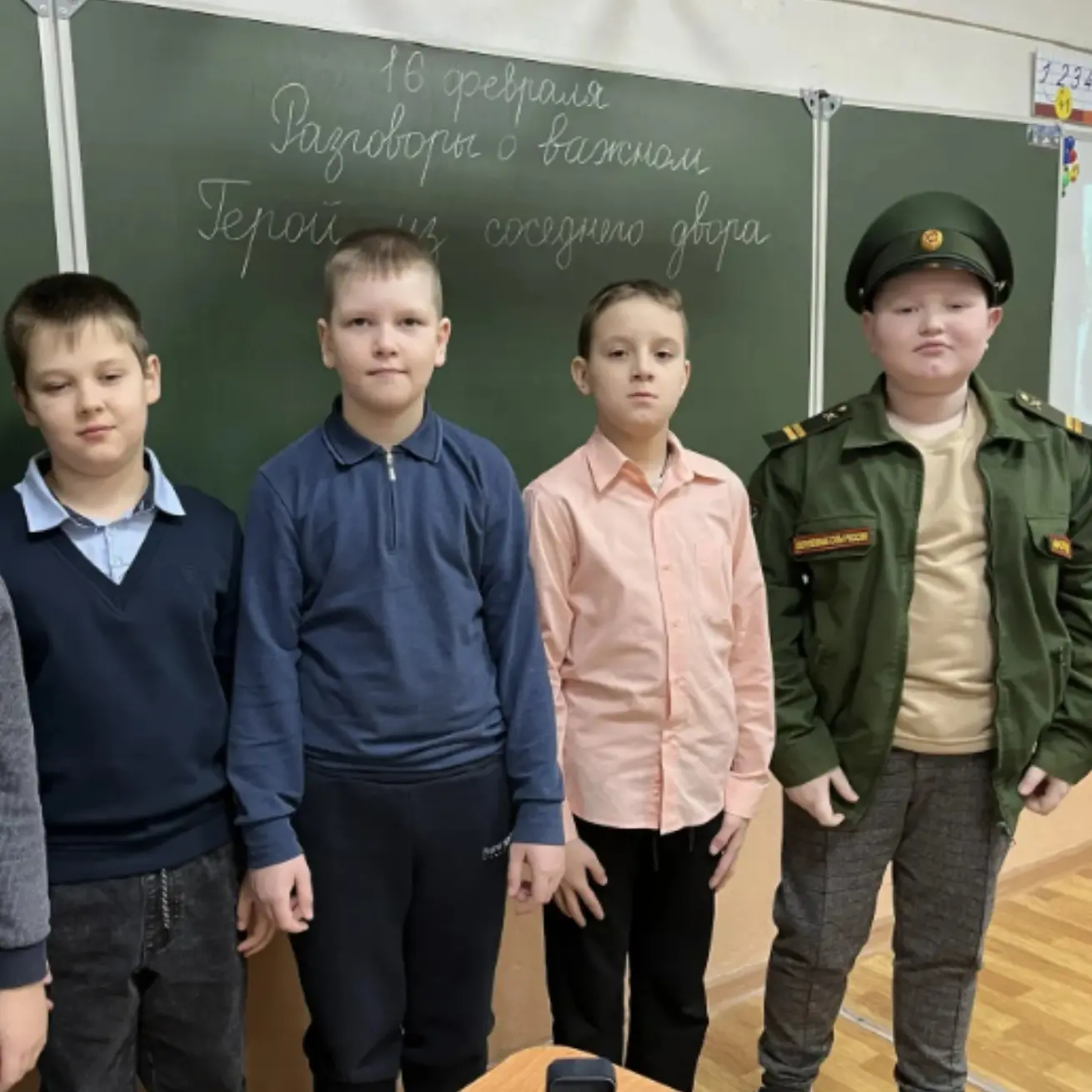 ▫️Тема занятия: «Герой из соседнего двора. Региональное занятие ко Дню защитника Отечества». Ребята говорили о том, что героизм и мужество живут не только в учебниках истории, но и совсем рядом — среди наших земляков, соседей и обычных людей, готовых прийти на помощь.