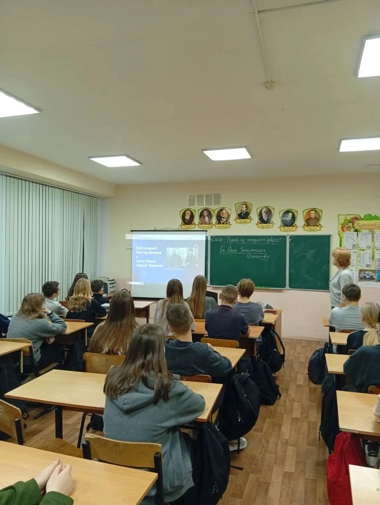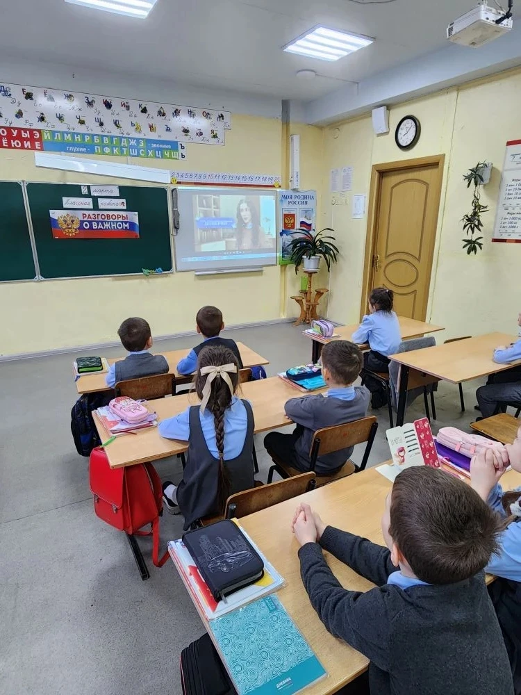 После линейки во всех классах прошло внеурочное занятие «Разговоры о важном». Сегодняшняя встреча была особенной — она была посвящена Дню защитника Отечества.