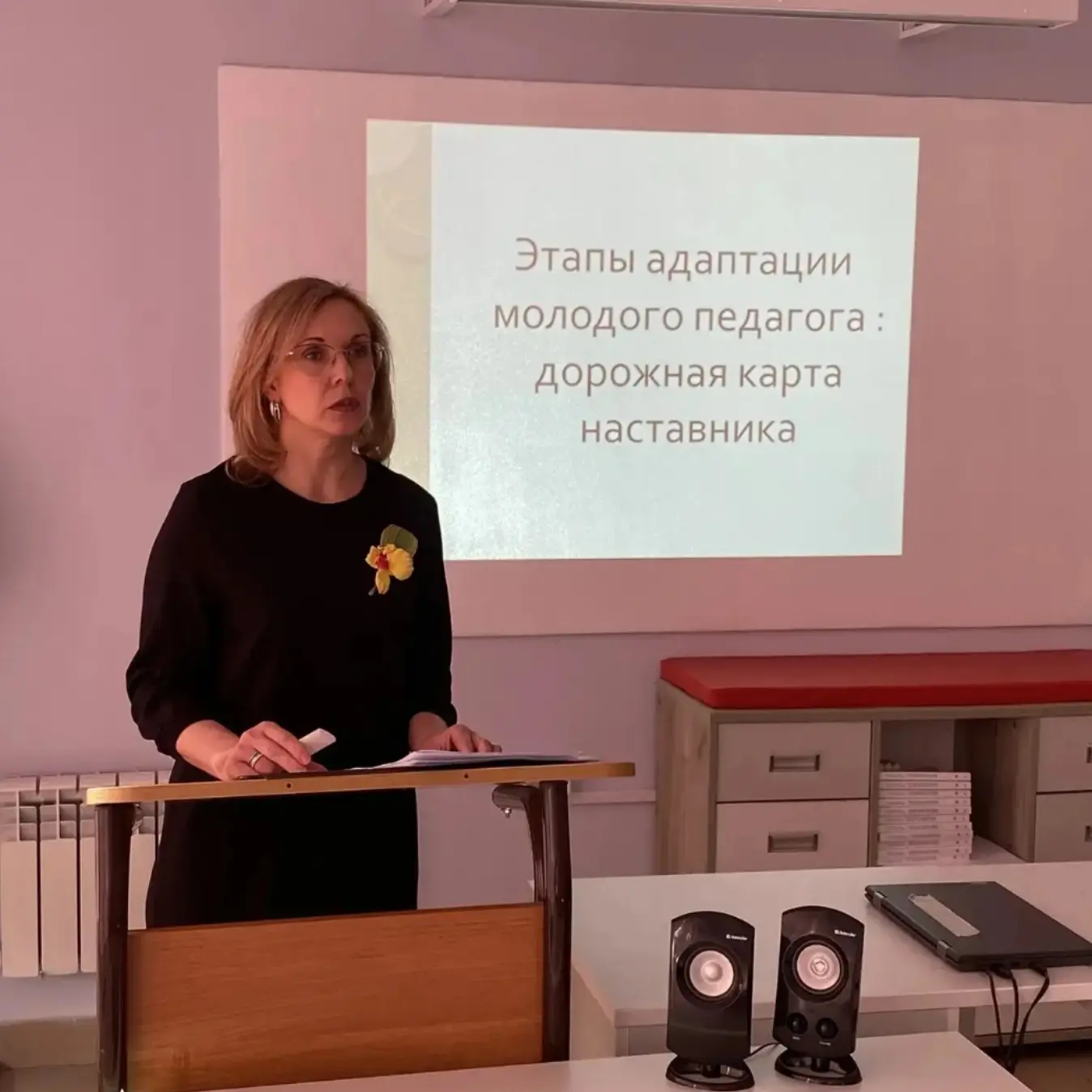 Заместитель директора по воспитательной работе Морозова Лилия Александровна в своем выступлении раскрыла потенциал моделей «учитель – ученик» и «ученик – ученик», показав, как наставничество становится ключом к развитию всех участников образовательного процесса. Тему поддержала учитель русского языка и литературы, наставник молодого педагога Крючкова Наталия Викторовна, которая в формате представила дорожную карту адаптации молодого учителя.