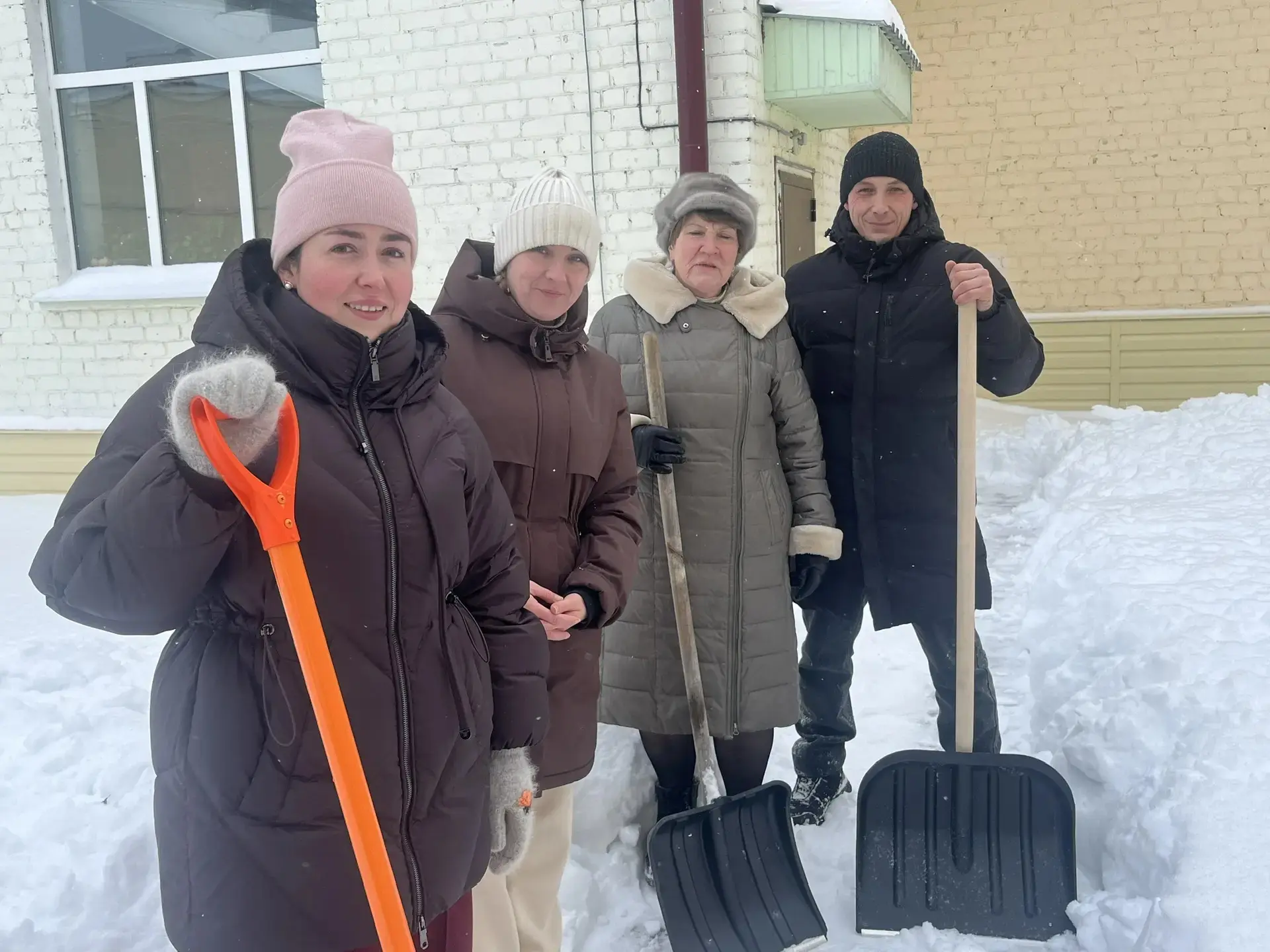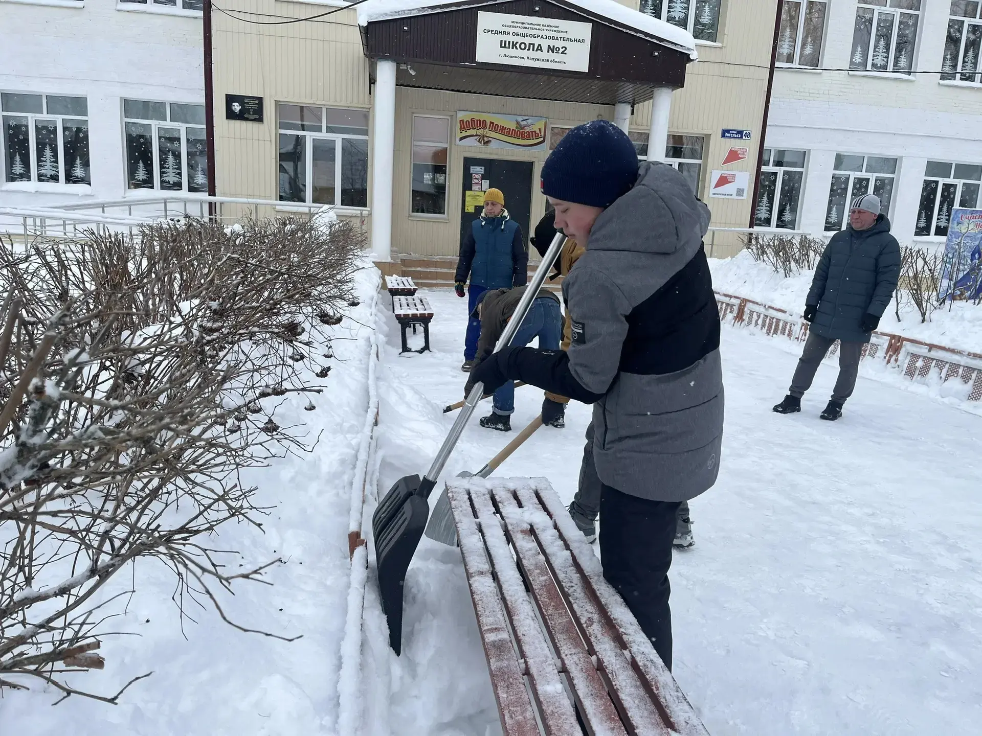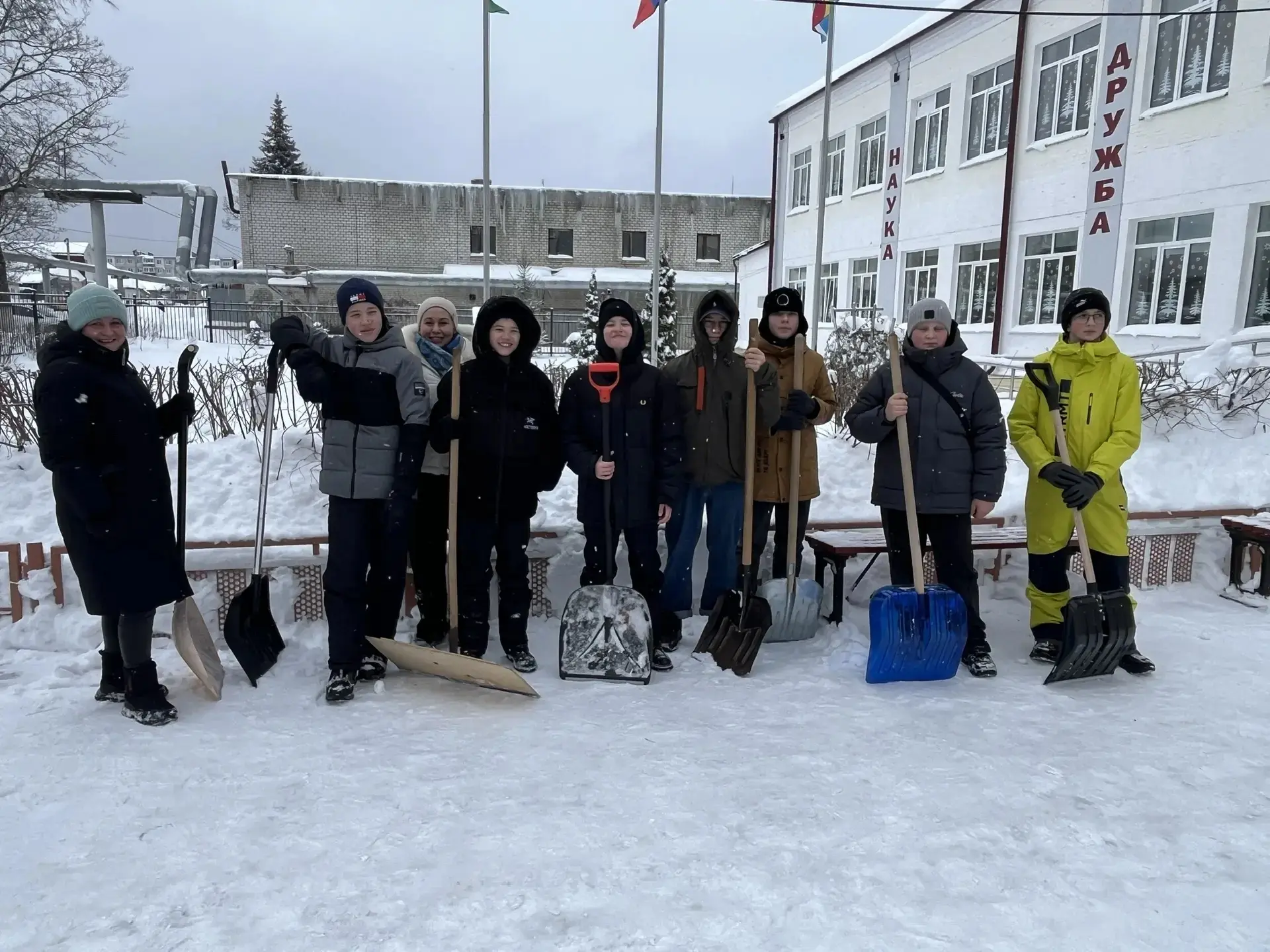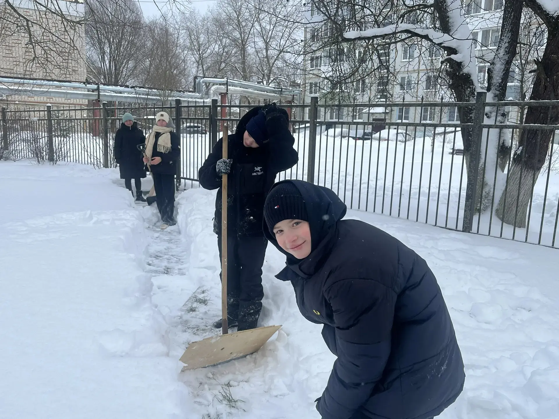 Педагоги, родители и учащиеся школы дружно очистили пришкольную территорию от снега.