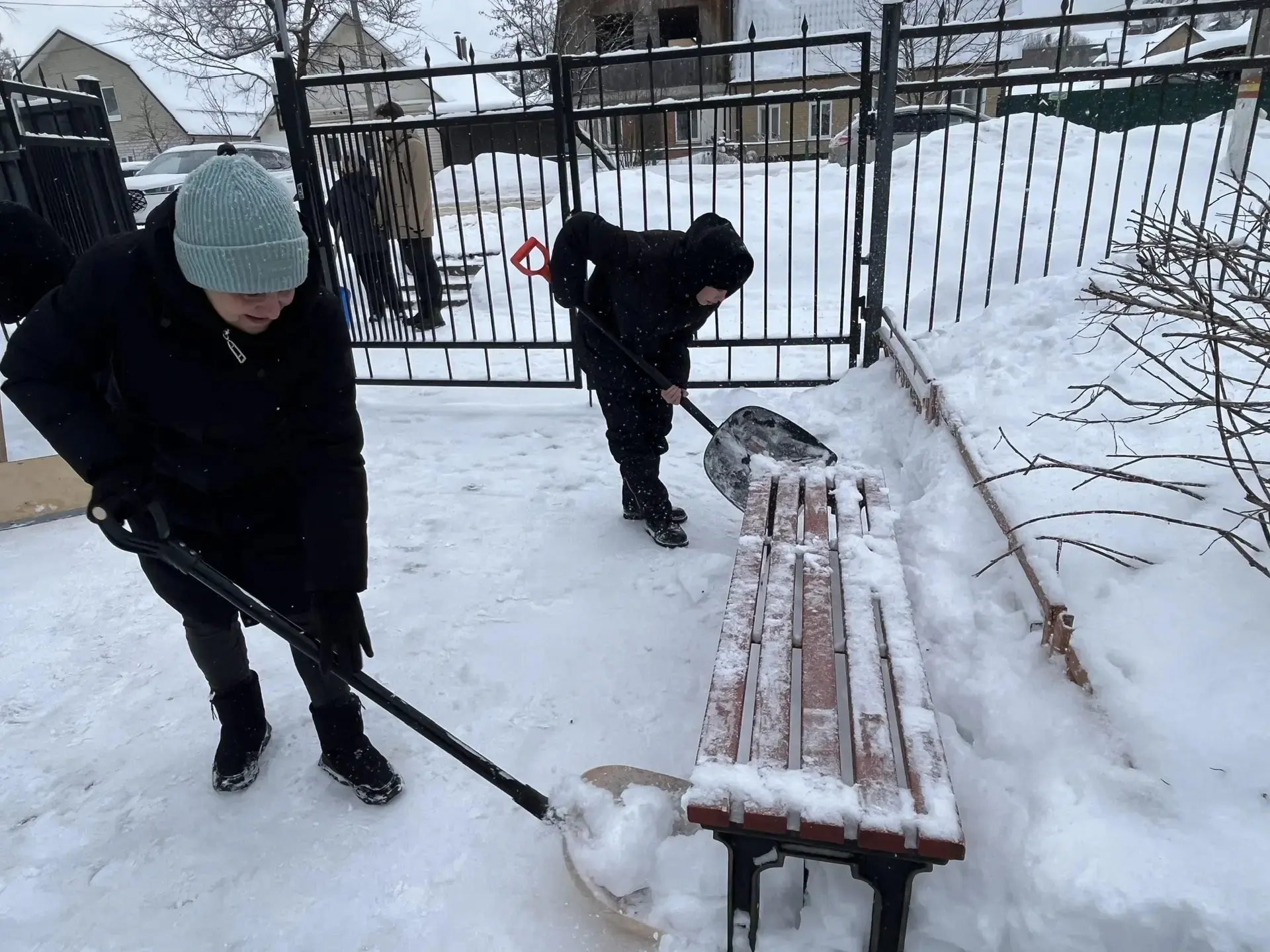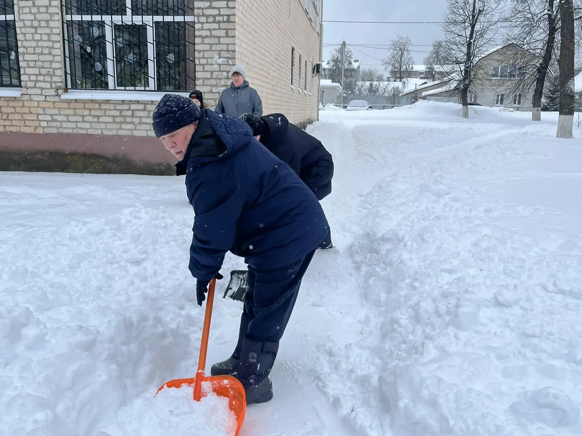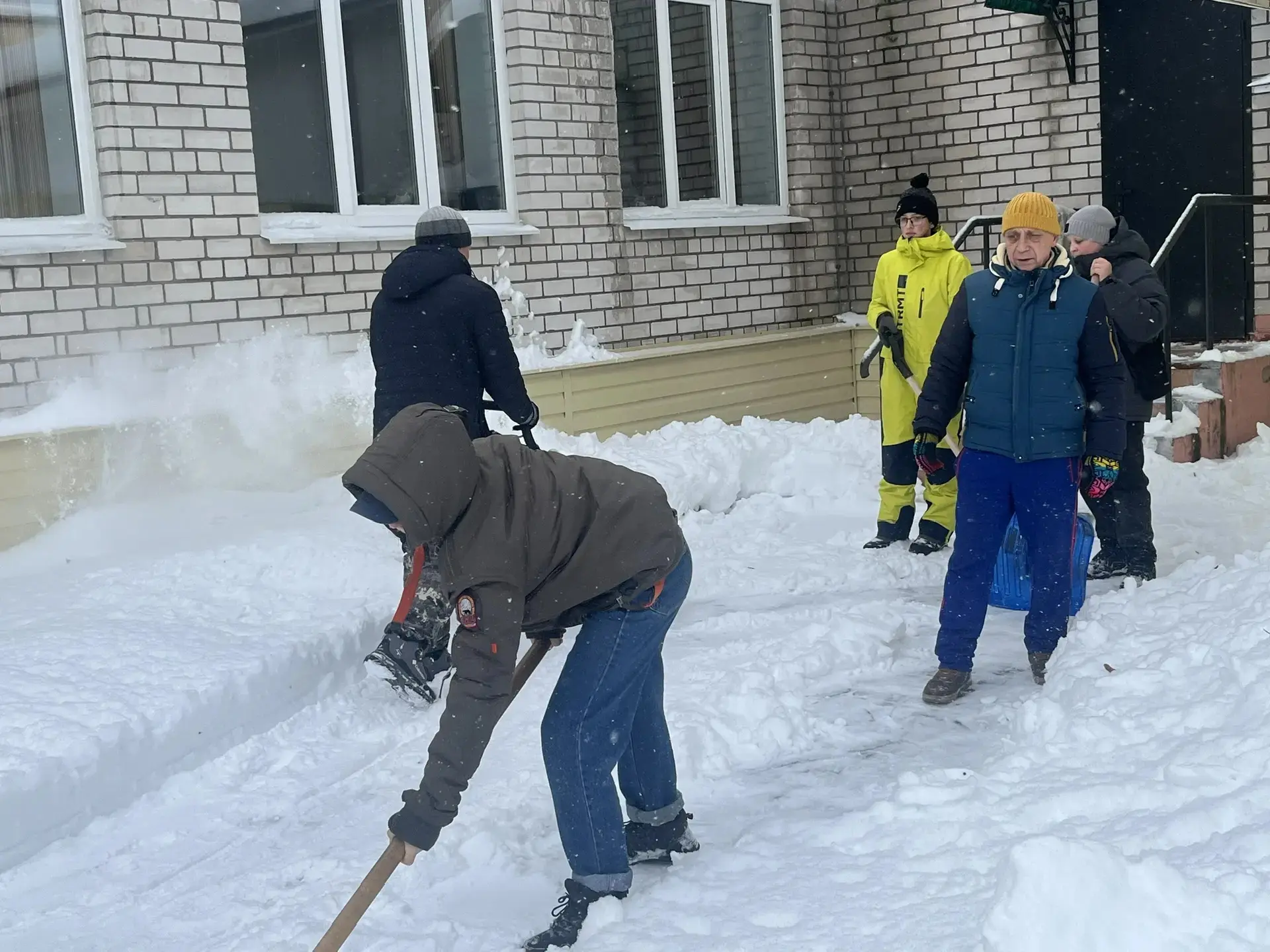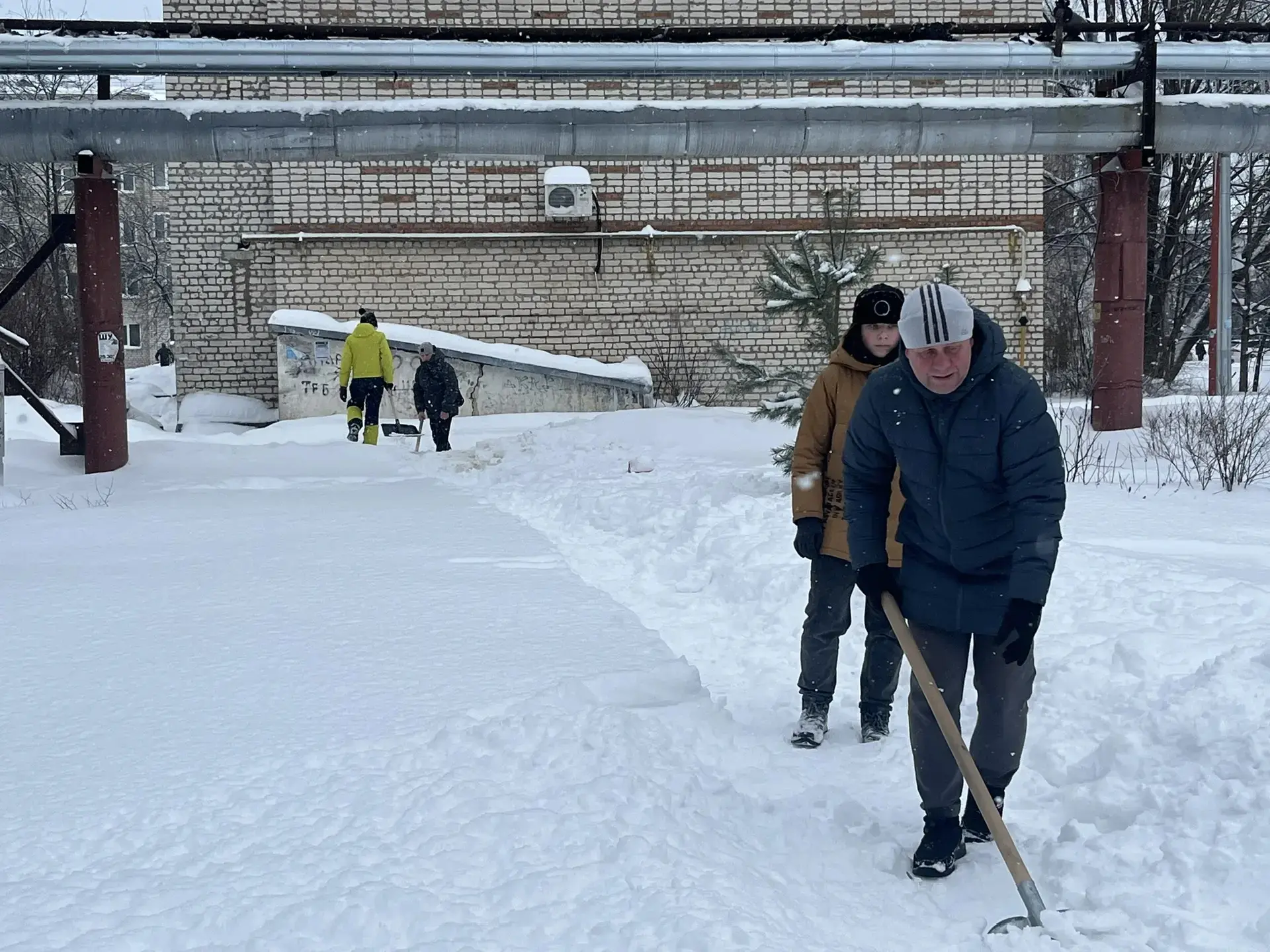 Педагоги, родители и учащиеся школы дружно очистили пришкольную территорию от снега.