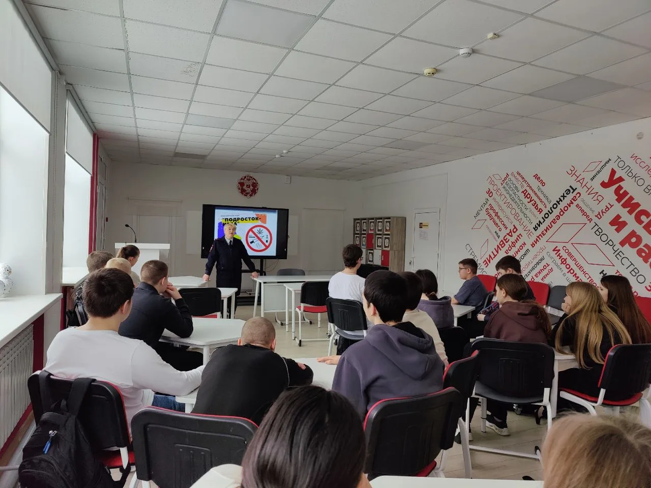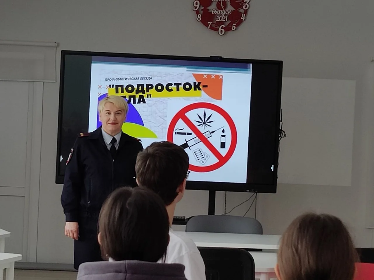 В рамках профилактической акции «Подросток – Игла» в школе состоялась встреча обучающихся восьмых классов с начальником ПДН МО МВД России "Людиновский", подполковником полиции Е. Д. Третьяковой. Елена Дмитриевна рассказала подросткам об ответственности несовершеннолетних за совершение правонарушений и преступлений, связанных с употреблением ПАВ, алкоголя, совершением краж и хищений, а также о безопасности в сети интернет и антитеррористической безопасности. Ответила на вопросы участников встречи.