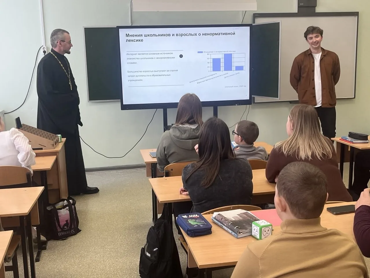 Под таким названием и в русле данной проблематики во второй школе состоялась встреча учащихся и педагогов с военным священником, участником СВО, настоятелем Храма святых Петра и Павла с. Овсорок Жиздринского района, иереем Алексеем Скрипкиным.