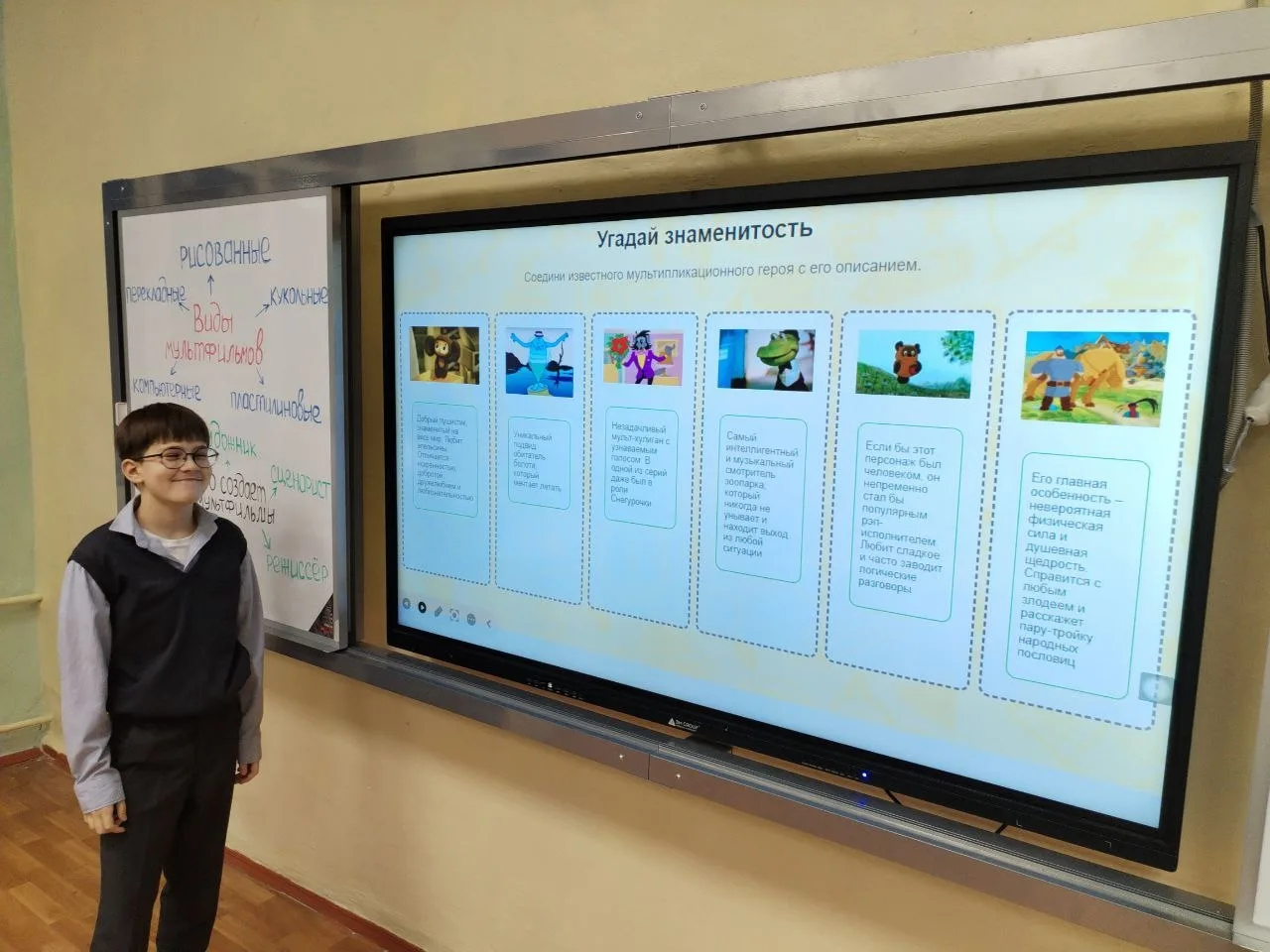 Ребята познакомились с легендарной студией «Союзмультфильм», посмотрели интервью с её продюсером и даже попробовали узнать героев в интерактивной викторине.