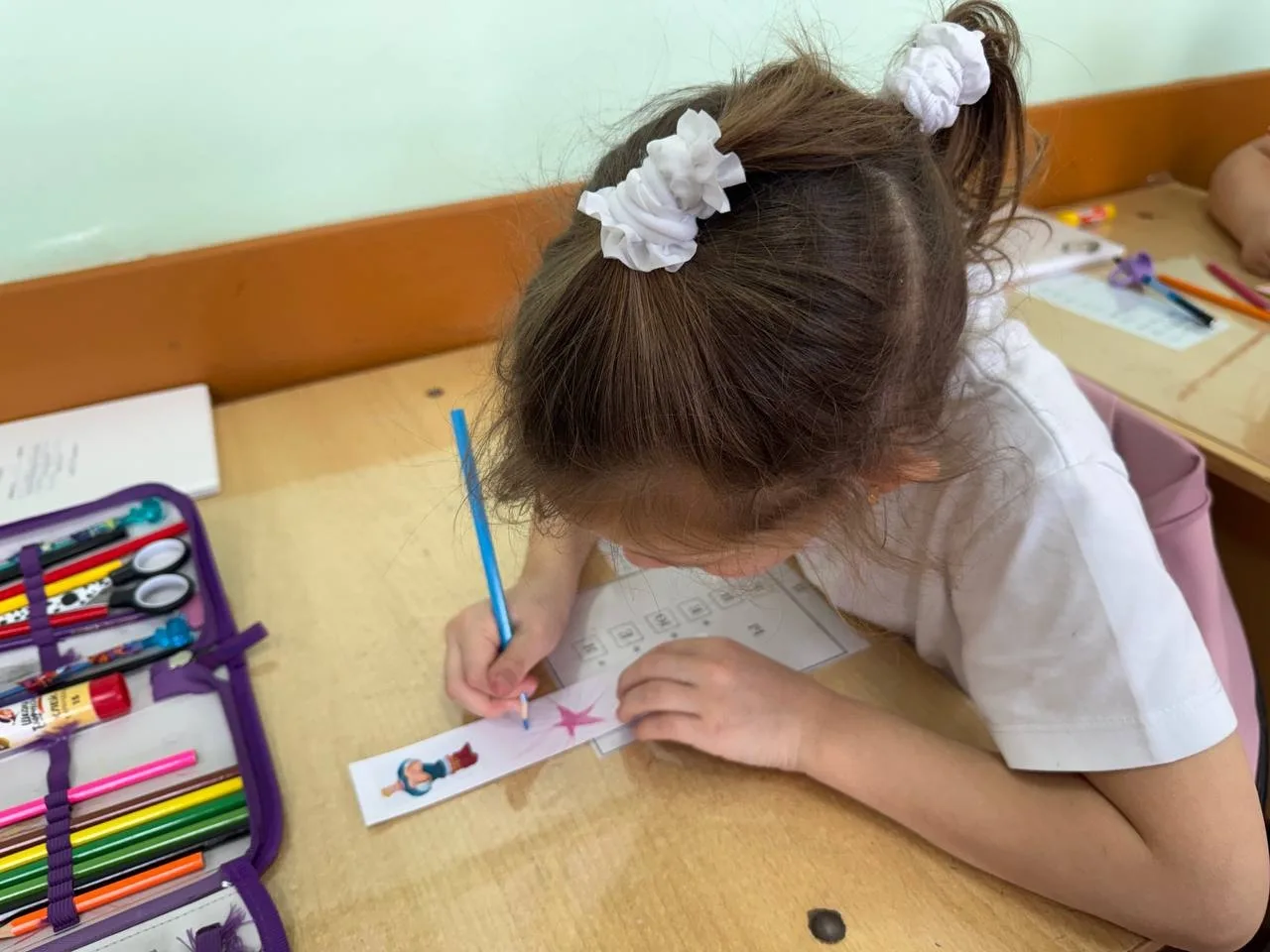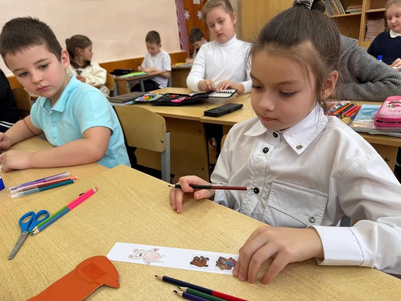 Каждый маленький участник получил картинку с изображением своего любимого героя. А дальше — самое интересное: под чутким руководством наших активистов картинки превратились в уникальные закладки. Мы клеили, вырезали, украшали и даже оставляли место для маленькой истории или пожелания от автора.