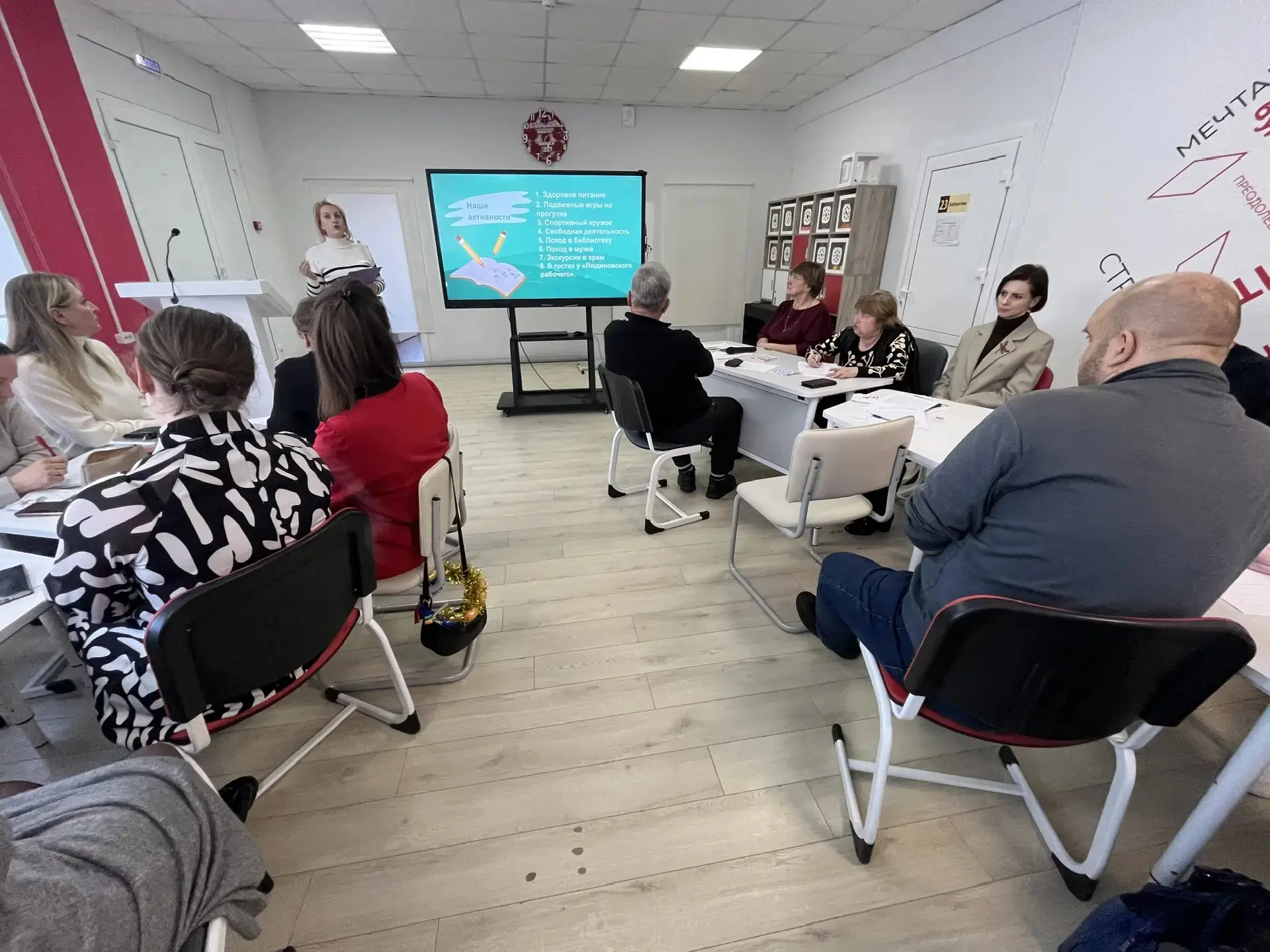 Обсудили вопросы здоровьесбережения в реализации модулей школьной программы воспитания, познакомились с положительным опытом работы отряда волонтеров- медиков ( Юдина Е.С.), школьного клуба «Старт» ( Голоухова Е.М.), группы продленного дня (Афонаскина Т.В., Королева Т.А.), участников программы «Орлята России» (Демидкина Е.Ю.)