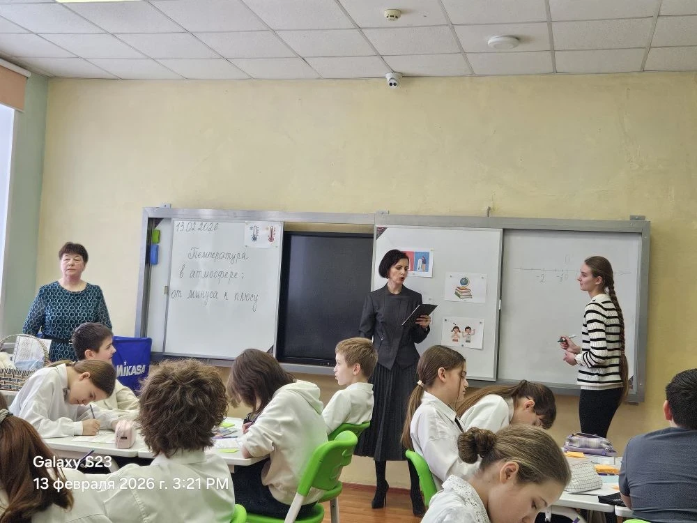 🌏 📖 Интегрированное занятие по географии и математике "Температура в атмосфере: от минуса к поюсу" провели учителя Гришина Т. А. и Гончарова Н. А. Занятие эффективно демонстрирует взаимосвязь наук, формирует целостное представление о природных процессах и закрепляет вычислительные навыки в контексте реальной жизни.