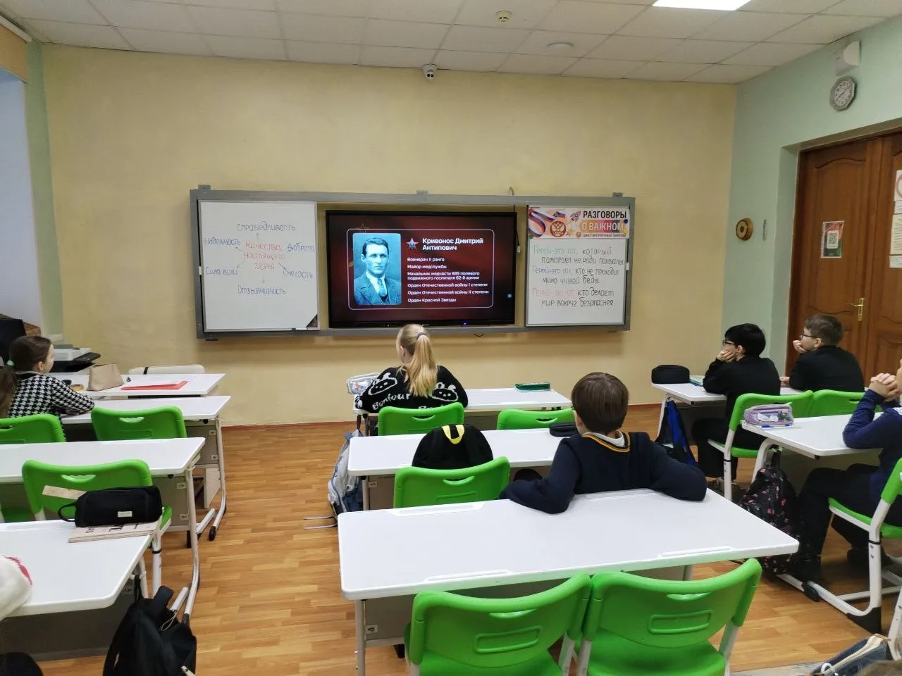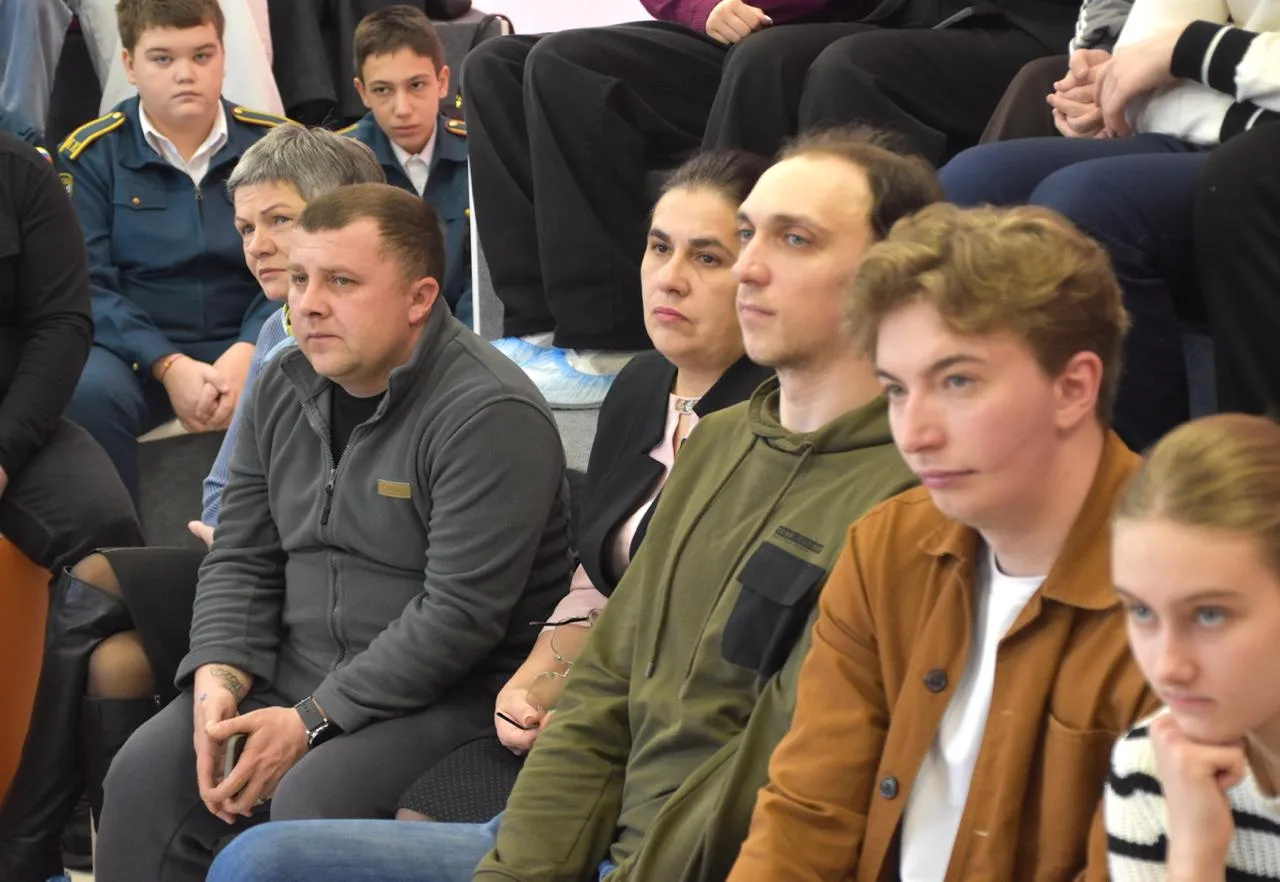 Благодарим гостей встречи-Начальника Управления образования округа Денисову М.А., настоятеля Соборного храма в честь Казанской иконы Божией Матери протоиерея Алексия Жиганова, помощника Главы администрации округа по взаимодействию с ветеранами СВО Потапова Д.Н., членов общественных организаций «Свои», «Сердце тыла», «Отцы России», «Русская община», учащихся и педагогов школ Людиново за активное участие в мероприятии, проявленный интерес к вопросам духовно- нравственного и патриотического воспитания подрастающего поколения.