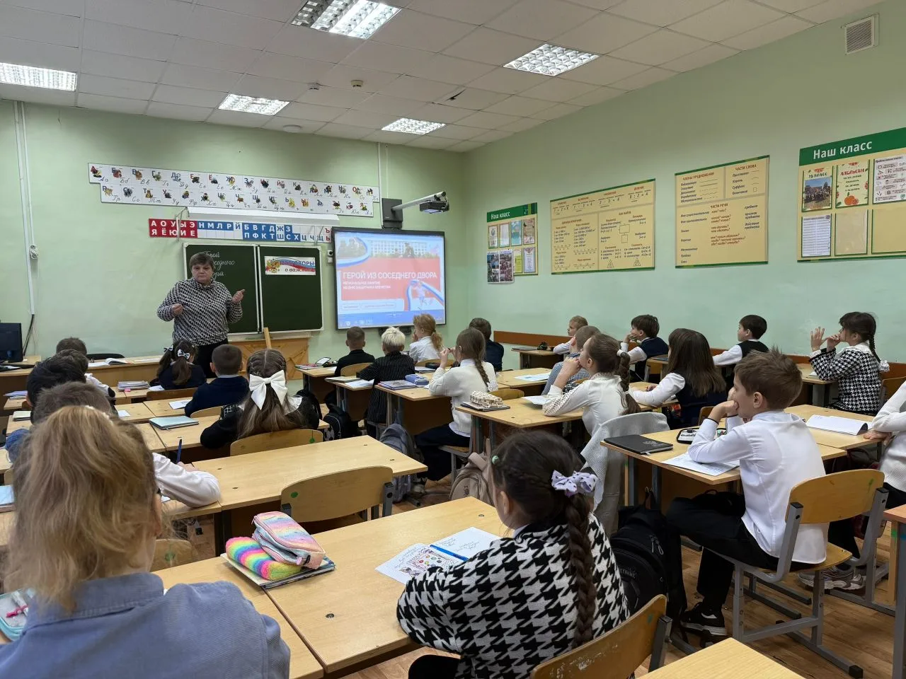 Особой «изюминкой» урока стала динамическая пауза, в которой приняли участие не только обучающиеся, но и учителя 💪👩🏫. Данный элемент позволил снять напряжение, повысить уровень энергии в классе и создать атмосферу сотрудничества и эмоционального единства.