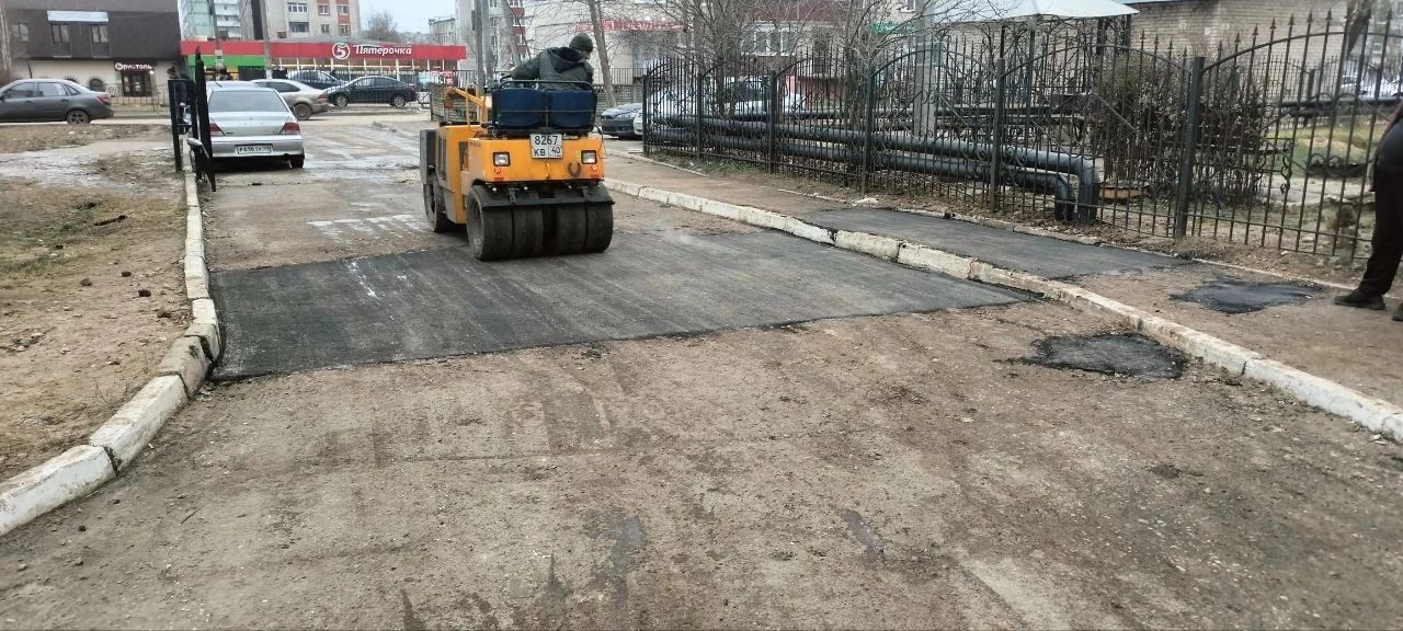 провели первое в этом году асфальтирование участков после производства работ по ремонту тепловых сетей по следующим адресам: