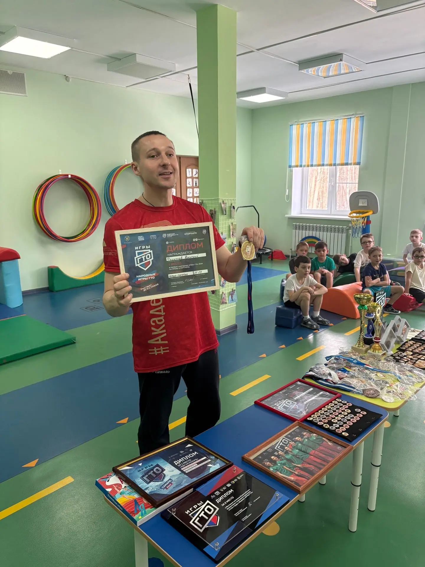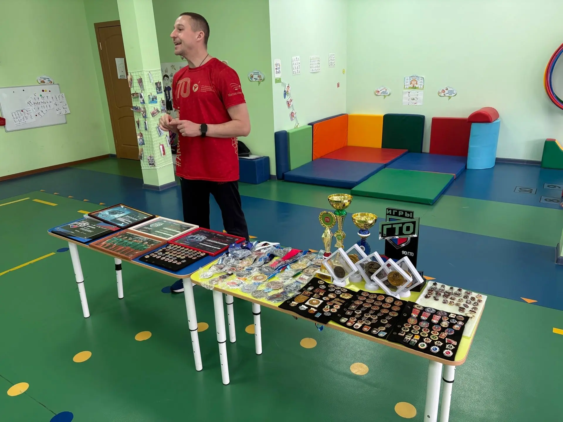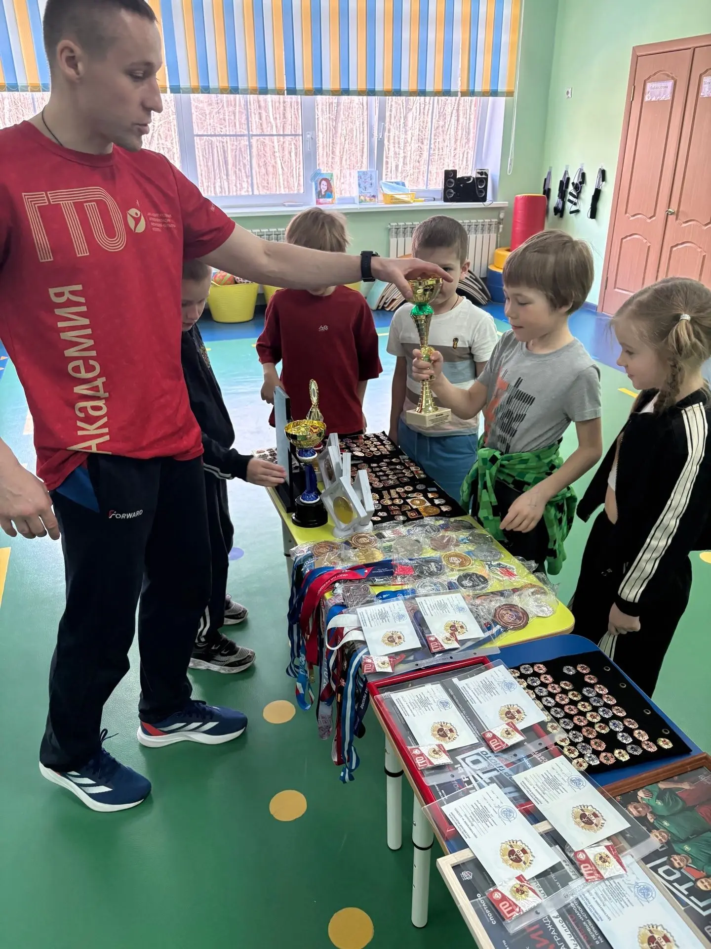 🥇🏆А еще Дмитрий Владимирович показал ребятам настоящие награды ГТО – медали, значки, кубки!