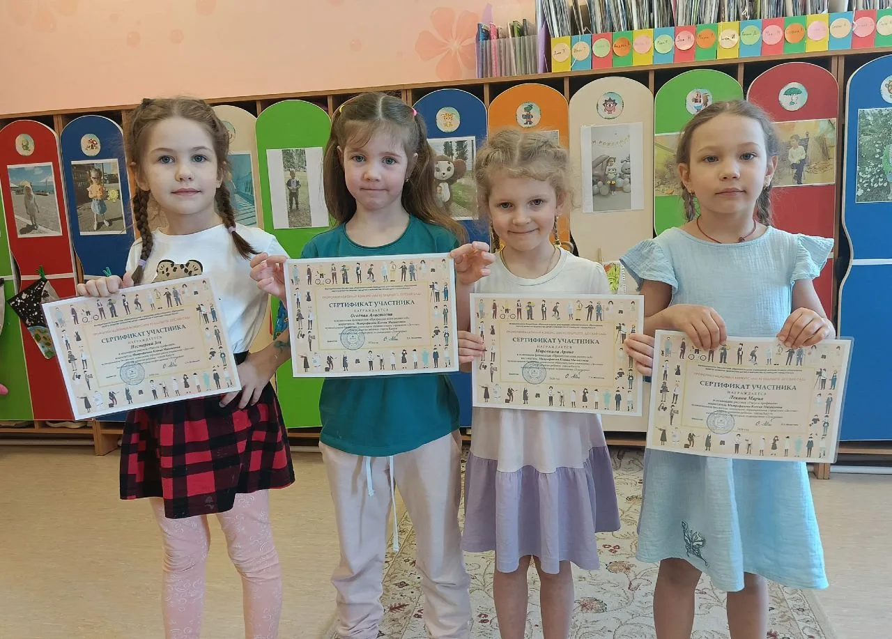 2. Также наши воспитанники из групп "Морозко" и "Котофей" получили сертификаты участников в городском конкурсе детского творчества "Мы из будущего".