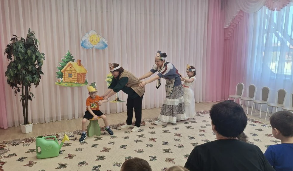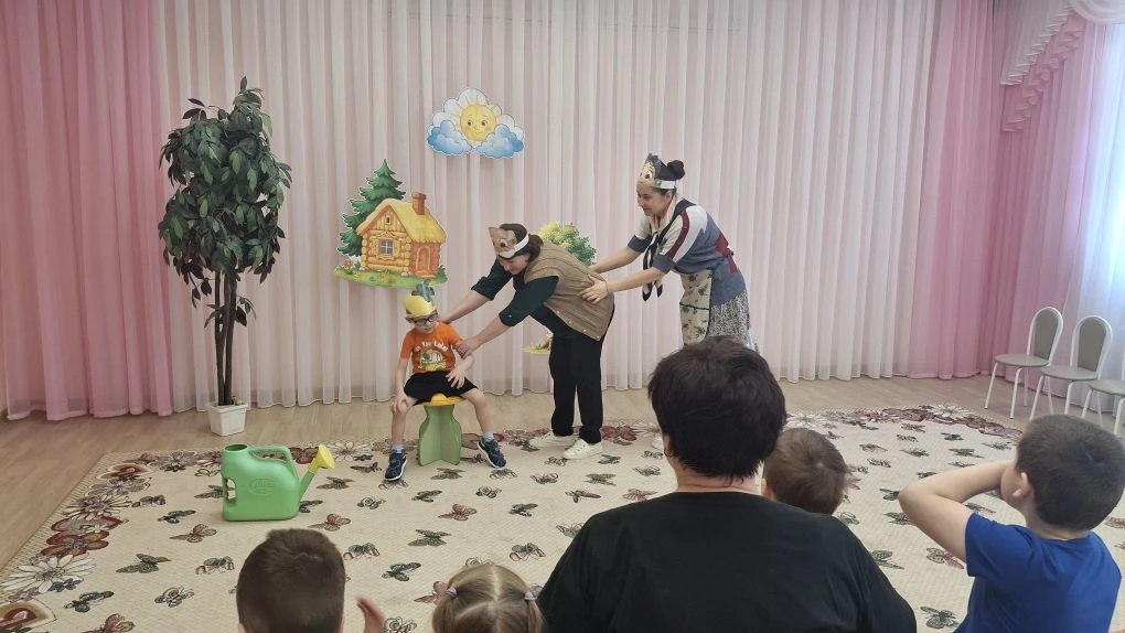 В рамках этого события воспитанники групп «Ручеек», «Солнышко» и «Росинка», познакомились с правилами посещения театра и стали не только зрителями, но и активными участниками инсценировки сказки «Репка».