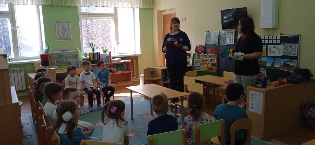 Сегодня в нашем детском саду прошла по‑настоящему душевная встреча! Воспитанники групп «Бусинки» и «Динозаврики» познакомились с волонтёрами Калужского регионального штаба #Мывместе. 🧡