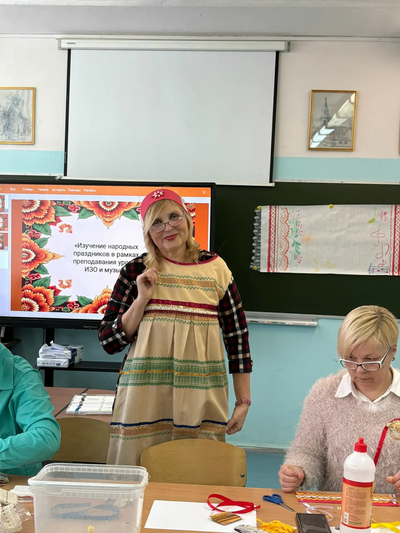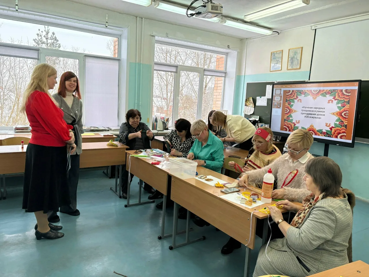 26 февраля в нашей школе прошел необычный городской семинар для учителей изобразительного искусства и музыки «Изучение народных праздников в рамках преподавания уроков ИЗО и музыки». Учитель ИЗО Мокрецова Е.М. и учитель музыки Финашова Л.И. объединили два искусства, чтобы показать единство звука и цвета в народных праздниках.
