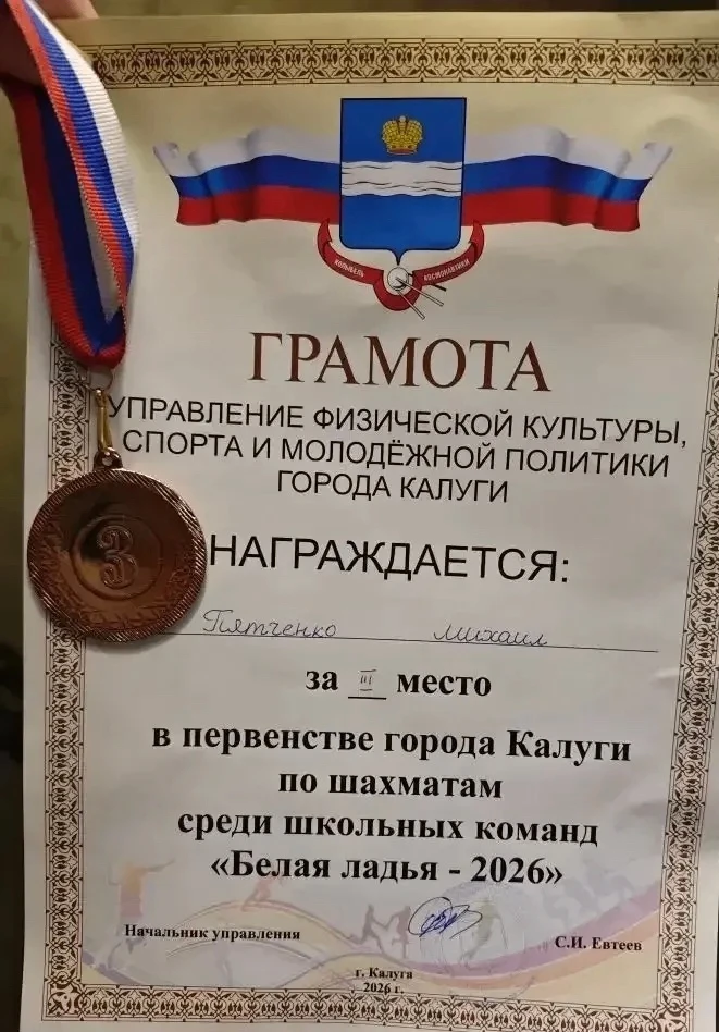 Завершилось первенство города Калуги по шахматам среди школьных команд «Белая ладья».