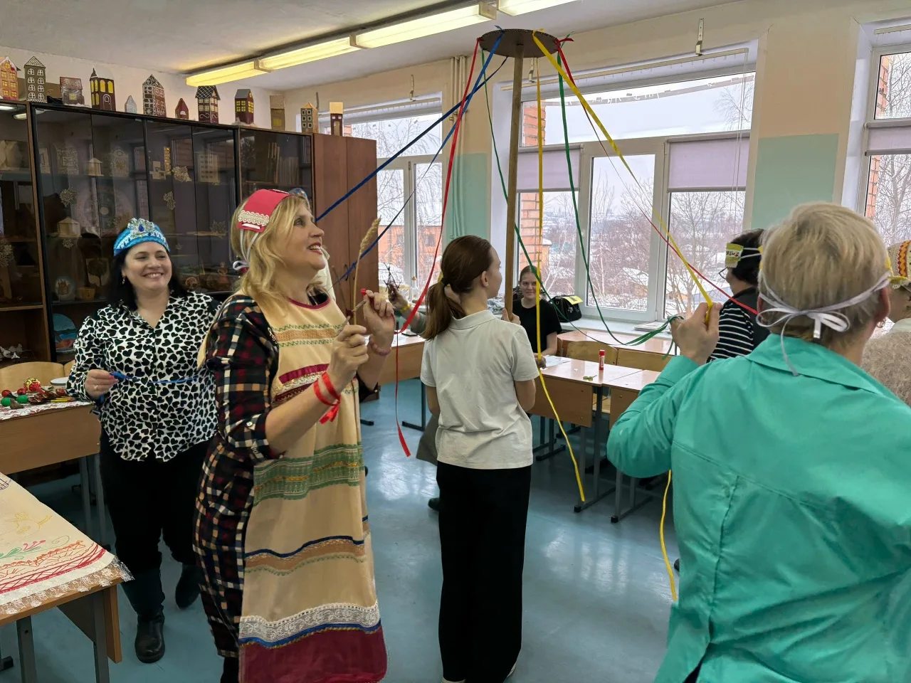 Кульминацией стала «Карусель времен года» с разноцветными лентами и хороводом под живую музыку. Все созданные обереги заняли место на общем полотенце-календаре — символе единства двух искусств.