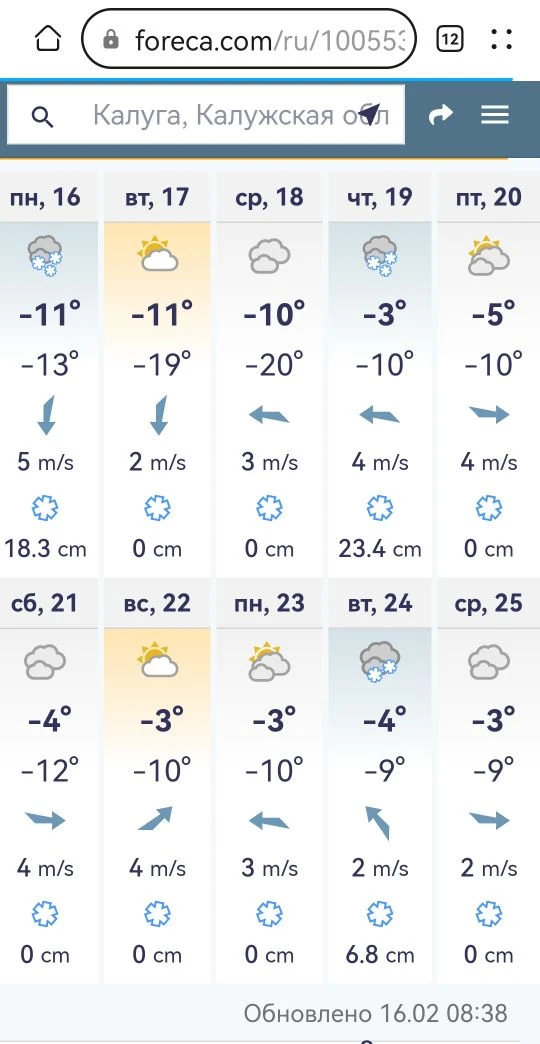 Прогноз на 10 суток от foreca.com